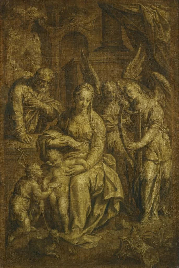 Painting Holy Family with angels - Hendrik de Clerck | Art print