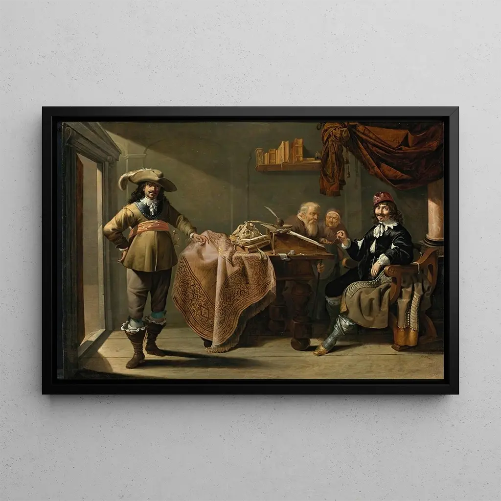 A charity scene in a notary's office: a moment of generosity and reflection The artwork "Aumône dans un bureau de notaire" depicts a poignant scene where charity and humanity meet. The warm, earthy colors, typical of the period, create an intimate and solemn atmosphere. The soft light entering through the window illuminates the faces of the characters, revealing nuanced emotions. The composition, carefully orchestrated, guides the viewer's gaze through the delicate interactions between the protagonists, each bearing a palpable emotional weight. This art print invites contemplation and reflection on the nature of almsgiving and human relationships. Almsgiving in a notary's office: a reflection of 17th-century society The artist behind "Aumône dans un bureau de notaire" is often associated with 17th-century painting, a period marked by profound realism and particular attention to the details of everyday life. Influenced by Flemish masters, he captured moments of ordinary life with rare emotional depth. This art print fits into a context where charity was not only a Christian virtue but also a reflection of the social norms of the time. Notaries, central figures in society, are depicted here in their role as mediators between different social classes, emphasizing the importance of human interactions. A decorative acquisition with multiple advantages The art print "Aumône dans un bureau de notaire" is a decorative piece that will add a touch of elegance and depth to any space, whether a living room, office, or bedroom. Its quality reproduction guarantees remarkable fidelity to the details of the original work, allowing art enthusiasts to enjoy its aesthetic appeal without compromise. By integrating this art print into your interior decor, you not only invite a piece of art into your space but also foster a conversation about generosity and human compassion, enriching the atmosphere of your home.