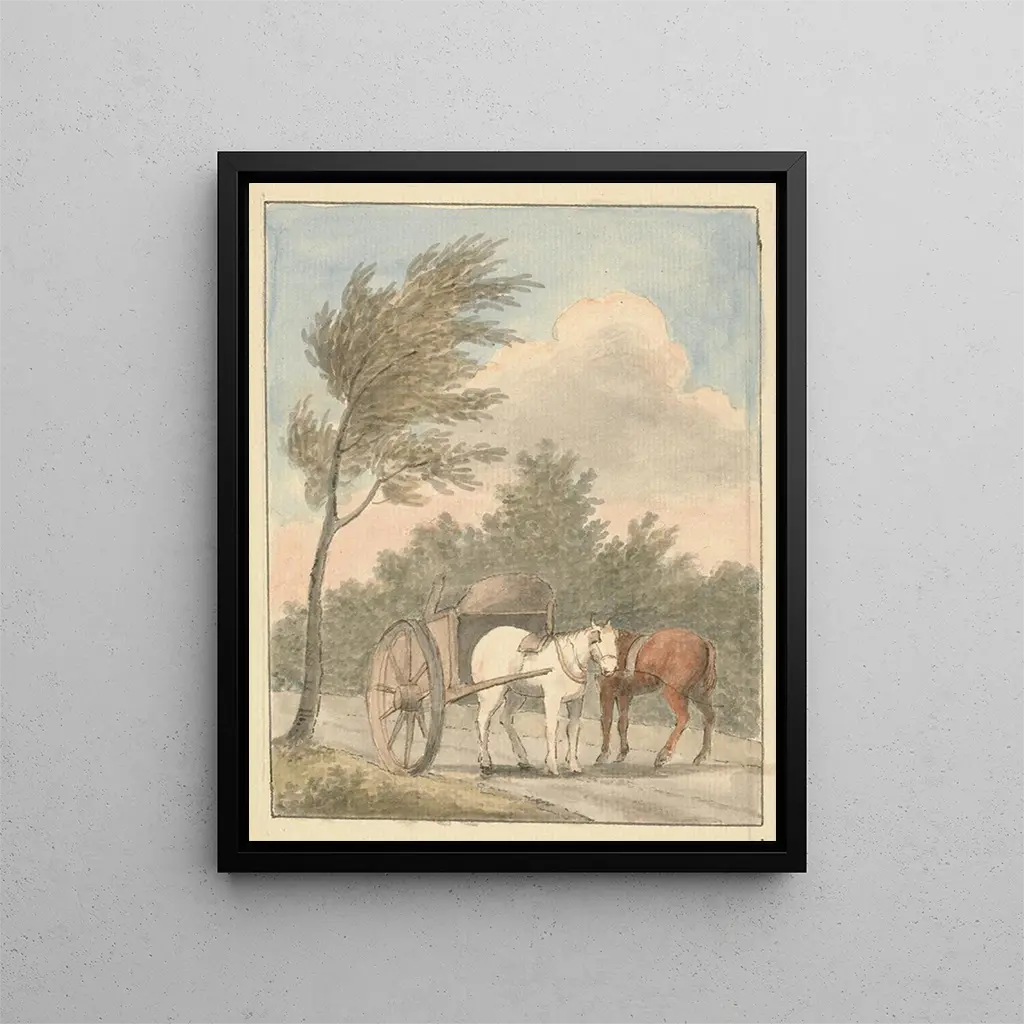 Edward Francis Burney's style is characterized by meticulous attention to detail and a delicate color palette. "Charrette à cheval" perfectly illustrates this approach, with subtle nuances that bring the painting to life. The play of light and shadow, as well as the way Burney renders the movement of the horse and the texture of natural elements, testify to his undeniable talent. Each brushstroke seems to tell a story, evoking the emotions linked to the daily life of farmers and their interaction with their environment. This art print is not just a simple representation; it is an invitation to feel and reflect on the passage of time and the beauty of fleeting moments.