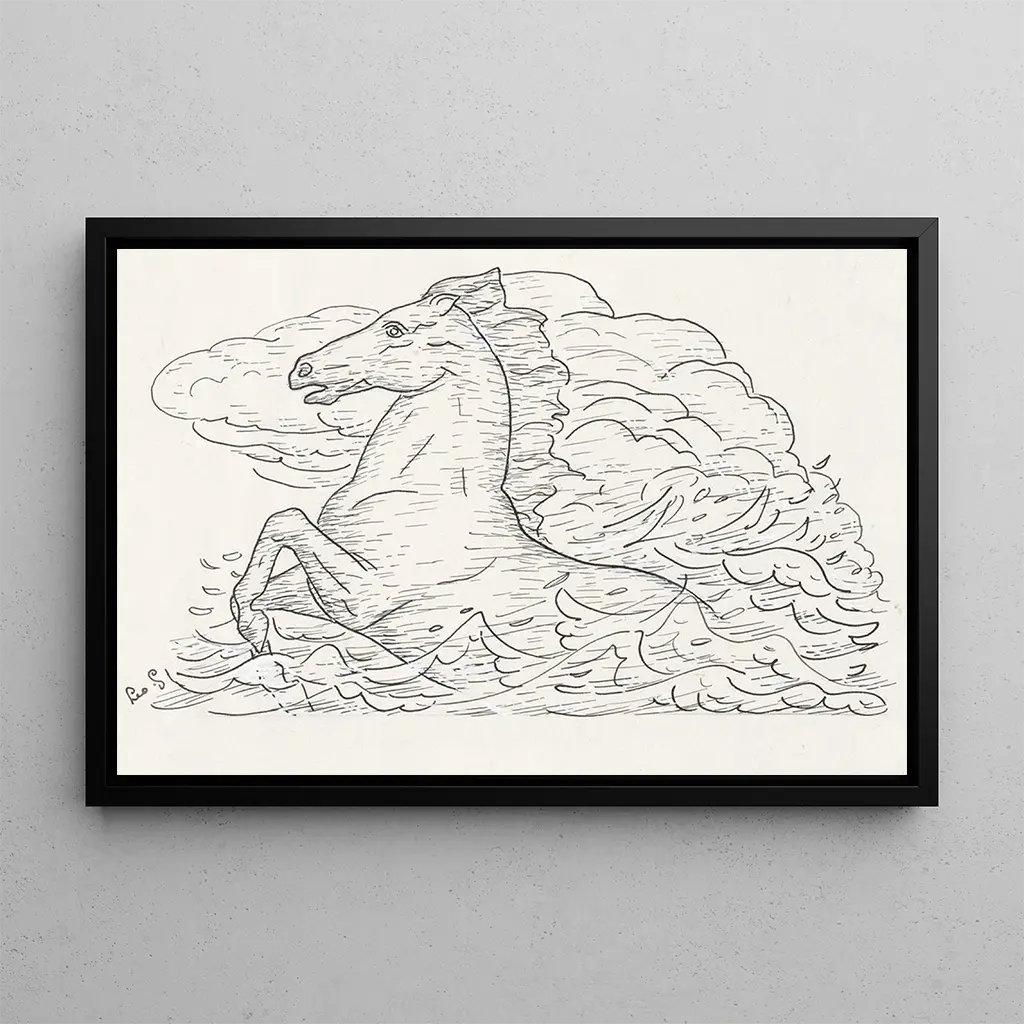 The art print of Cheval dans la Mer immerses us in a vibrant scene where animal power meets the vastness of the ocean. Leo Gestel, with his bold technique, uses bright colors to capture the movement and energy of this fleeting moment. The waves crash around the horse, creating a dynamic that evokes freedom and strength. Light plays a crucial role, illuminating the forms and emphasizing the textures of the water and the horse. This piece, both wild and poetic, invites us to feel the deep connection between man, animal, and the marine element.