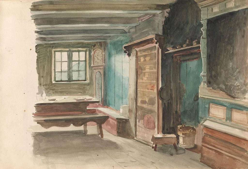 Adolph Tidemand, born in 1814, is one of the most emblematic artists of Norwegian realism. Influenced by Romanticism, he captured the essence of rural life through his works. Tidemand traveled across Norway to immerse himself in local landscapes and traditions, enriching his style. His work is often associated with a desire to preserve and celebrate Norwegian national identity, especially in the 19th century, a period marked by social and political changes. His ability to depict everyday life with such precision and emotion has made him a key figure in Scandinavian art.