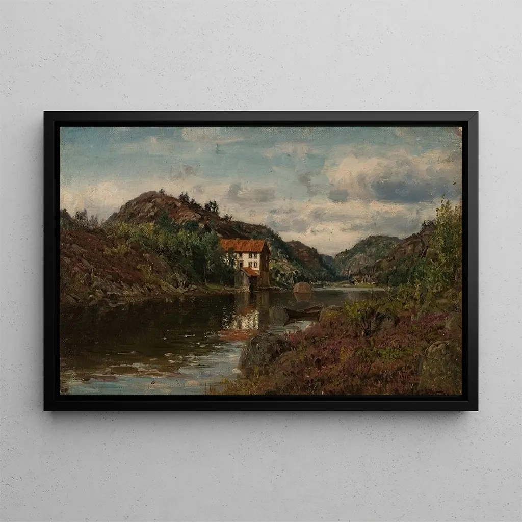 Hovenkilen near Mandal: an immersion in Scandinavian beauty The art print Hovenkilen near Mandal by Amaldus Nielsen transports the viewer to the heart of an enchanting Norwegian landscape. The soft shades of green and blue blend to create a peaceful atmosphere, where the sea and land meet harmoniously. Nielsen's technique, which combines realism with an impressionist touch, captures the natural light and reflections on the water, adding visual depth to the scene. This painting evokes a sense of calm and serenity, inviting contemplation of the wonders of Scandinavian nature. Amaldus Nielsen: a pioneer of Nordic landscape art Amaldus Nielsen, active in the late 19th century, was a Norwegian artist whose work was influenced by the majestic landscapes of his homeland. Member of the Norwegian artistic movement, he mastered capturing the wild beauty of Scandinavian nature through his canvases. Nielsen was also a forerunner in the use of light and color, enabling him to create highly expressive works. His contribution to Norwegian art is significant, and his landscapes continue to inspire art enthusiasts around the world. A decorative art print with multiple virtues The reproduction of Hovenkilen near Mandal is a decorative piece that fits perfectly into various spaces, whether in a living room, office, or bedroom. Its printing quality ensures remarkable fidelity to the colors and details of the original artwork, offering undeniable aesthetic appeal. This art print brings a touch of nature and escape to your interior, while sparking interest in Scandinavian art. By choosing this canvas, you enrich your decor with a piece that celebrates the beauty of Norwegian landscapes and the talent of a renowned artist.