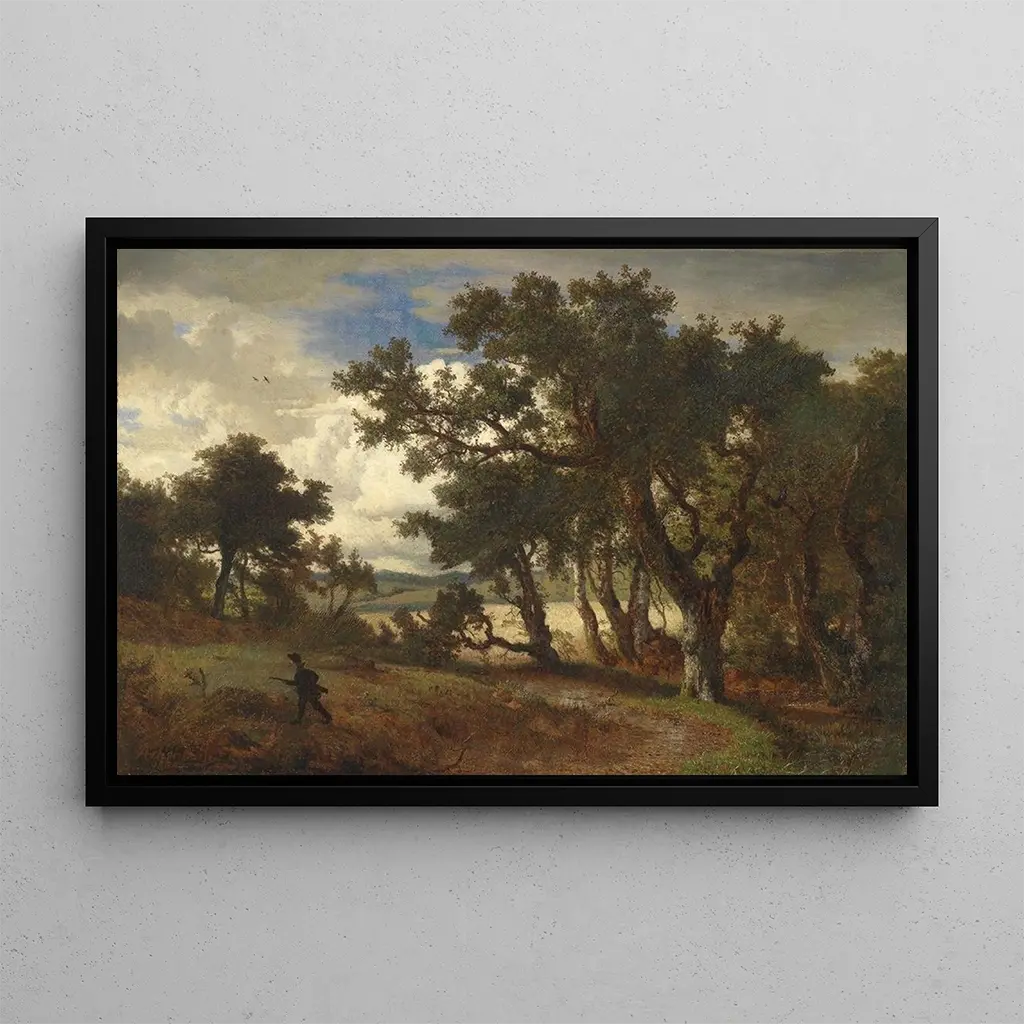 Chasseur dans le paysage : une immersion dans la nature sauvage Ce tableau captivant, "Chasseur dans le paysage", nous plonge au cœur d'une scène bucolique où la nature s'épanouit dans toute sa splendeur. Les nuances de vert, de brun et de bleu s'entrelacent harmonieusement, créant une atmosphère paisible et sereine. La technique de peinture à l'huile d'Andreas Achenbach permet de rendre les détails des feuillages et des cieux d'une manière presque photographique. Le chasseur, figure centrale, semble en parfaite communion avec son environnement, illustrant la relation intime entre l'homme et la nature. Cette œuvre invite à la contemplation et à la réflexion sur notre place dans le monde naturel. Andreas Achenbach : maître du paysage romantique Andreas Achenbach, né en 1815, est un peintre allemand reconnu pour ses paysages romantiques qui capturent la beauté de la nature. Influencé par le mouvement romantique, il a su développer un style unique, alliant réalisme et poésie. Achenbach a voyagé à travers l'Europe, s'inspirant des paysages variés qu'il a rencontrés, ce qui a enrichi son œuvre. Son importance réside dans sa capacité à évoquer des émotions profondes à travers des représentations de la nature, tout en intégrant des éléments narratifs. "Chasseur dans le paysage" est un exemple parfait de son talent, témoignant de l'harmonie entre l'homme et son environnement. Une acquisition décorative aux multiples atouts Opter pour la reproduction de "Chasseur dans le paysage" est un choix judicieux pour embellir votre intérieur. Que ce soit dans un salon, un bureau ou une chambre, ce tableau apporte une touche de sérénité et de nature à votre décoration. La qualité de la reproduction garantit une fidélité aux détails et aux couleurs d'origine, permettant de profiter pleinement de l'œuvre d'Achenbach. Son attrait esthétique et sa capacité à susciter la contemplation en font un élément décoratif idéal, capable d'enrichir n'importe quel espace de vie.