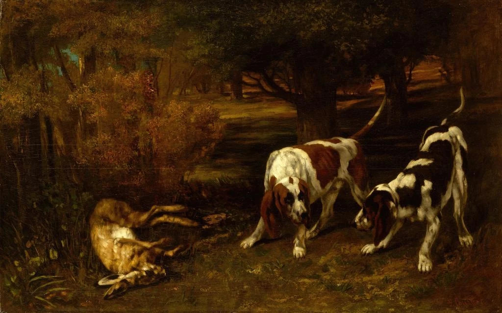 Hunting Dogs with Dead Hare: a painting of bravery and nature