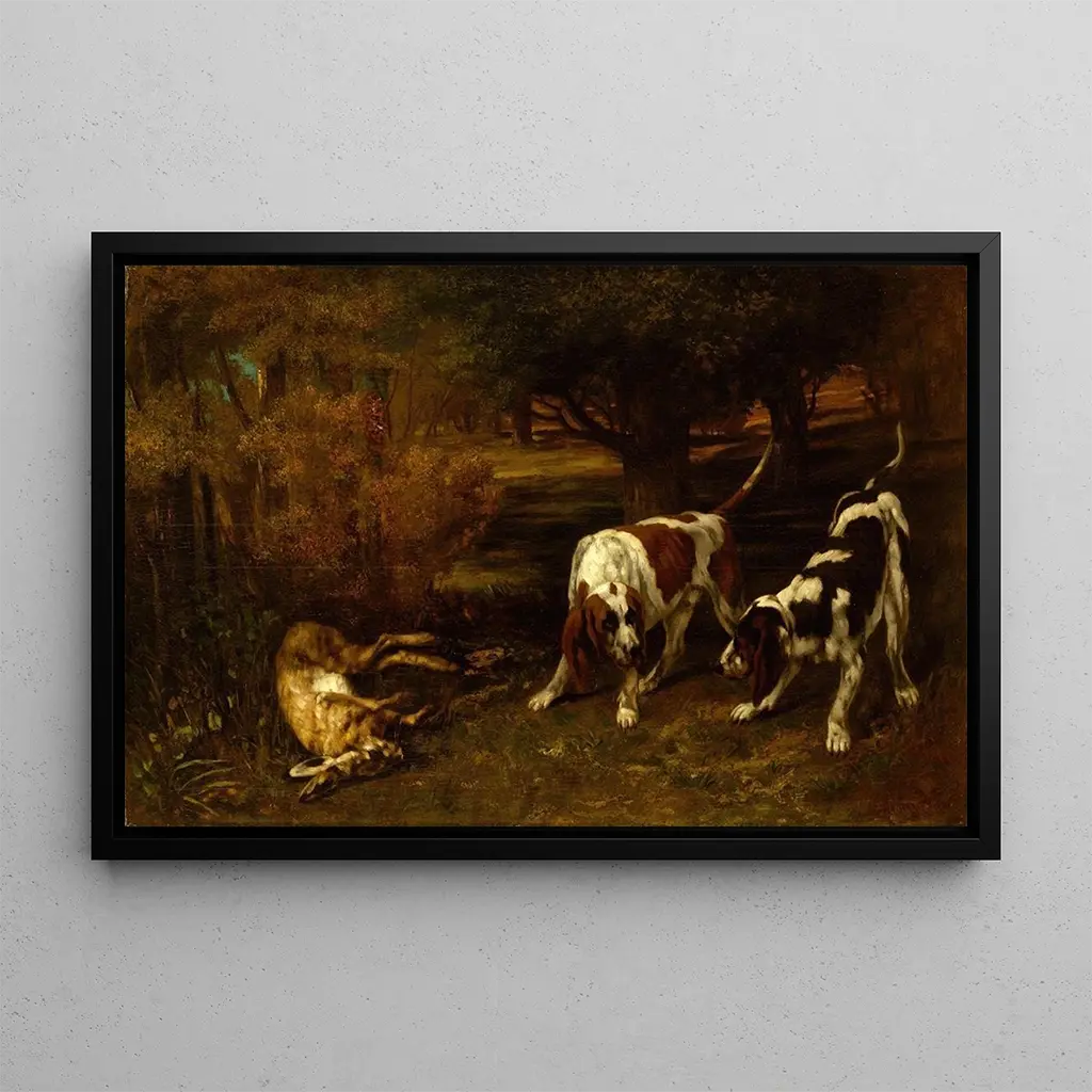 Art print | Hunting dogs with dead hare - Gustave Courbet