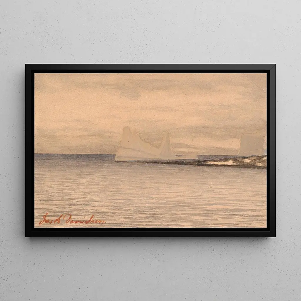 The art print Icebergs by Jacob Danielsen evokes a natural majesty where ice meets the azure sky. The shades of blue and white blend harmoniously, creating an atmosphere that is both serene and powerful. The artist's technique, which uses delicate brushstrokes, brings these icy formations to life, making the cold emanating from the canvas almost palpable. Contemplating this piece, one feels an invitation to reflect on the beauty and fragility of our environment, a true homage to nature.