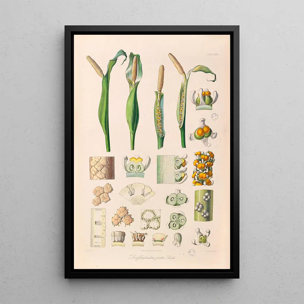 Icones Aroidearum Pl26 : une exploration des merveilles végétales "Icones Aroidearum Pl26" de Heinrich Wilhelm Schott est une œuvre fascinante qui met en lumière la diversité des espèces aroides. Cette illustration se caractérise par sa précision et ses couleurs éclatantes, qui rendent hommage à la beauté des plantes tropicales. Les détails minutieux des feuilles et des fleurs, associés à une palette riche de verts profonds et de nuances délicates, créent une atmosphère vivante et accueillante. Schott, par son talent, parvient à capturer l'essence même de ces plantes, invitant le spectateur à apprécier la complexité et la splendeur de la nature. Heinrich Wilhelm Schott : un artiste au service de la botanique Heinrich Wilhelm Schott, botaniste et illustrateur, est reconnu pour ses contributions significatives à la science botanique au XIXe siècle. Né en 1794, il a consacré sa carrière à l'étude des plantes aroides, un groupe fascinant et varié. Ses voyages en Amérique du Sud lui ont permis de découvrir de nouvelles espèces, qu'il a documentées avec une précision remarquable. Schott a su allier science et art, produisant des œuvres qui sont devenues des références dans le domaine de l'illustration botanique. "Icones Aroidearum Pl26" est l'un de ses chefs-d'œuvre, témoignant de son dévouement à la botanique et à l'esthétique. Une acquisition décorative aux multiples atouts La reproduction de "Icones Aroidearum Pl26" est un choix idéal pour ceux qui souhaitent embellir leur espace de vie. Que ce soit dans un salon, un bureau ou une chambre, cette toile apporte une touche de nature et de sophistication. Sa qualité d'impression assure une fidélité aux détails et aux couleurs de l'œuvre originale, créant une atmosphère chaleureuse et accueillante. En intégrant ce tableau dans votre décoration, vous ajoutez non seulement un élément esthétique, mais aussi une pièce chargée d'histoire et de science, qui saura captiver l'attention de vos invités.