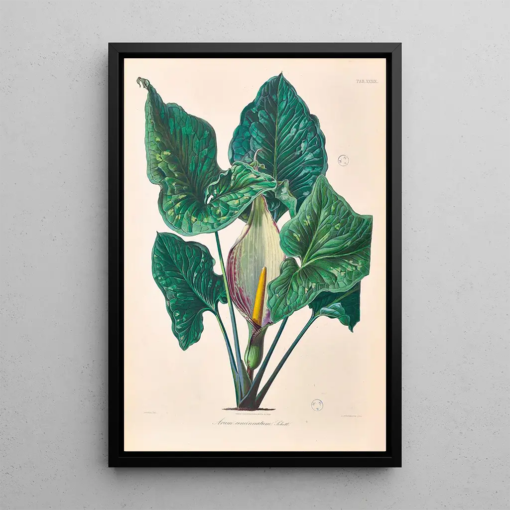 The art print of Icones Aroidearum Pl39 makes an ideal decorative choice for various living spaces, whether a living room, office, or bedroom. Its printing quality guarantees remarkable fidelity to the original details, while adding a touch of greenery and freshness to your interior. The aesthetic appeal of this canvas makes it a captivating focal point, inspiring admiration from your guests. By integrating this piece into your decor, you offer not only a work of art but also a tribute to the beauty of nature, enriching your daily environment.
