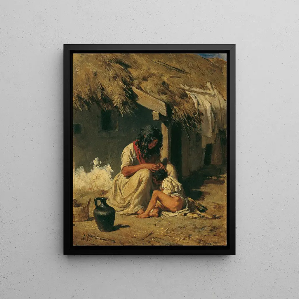 In the rich and vibrant panorama of 19th-century art, the artwork "Idyll of a Hungarian Village" by August von Pettenkofen stands out for its ability to capture the essence of rural life imbued with serenity and simplicity. This painting, which evokes scenes of the Hungarian countryside, transports us to a world where time seems to stand still, where every element of nature and architecture tells a story. Through this art print, the viewer is invited to immerse themselves in a tableau where light, color, and composition combine to create an atmosphere that is both peaceful and poetic. Style and uniqueness of the work August von Pettenkofen's work is characterized by a realistic style that masterfully blends meticulous observation of details with an almost impressionist approach to colors and light. In "Idyll of a Hungarian Village," delicate shades of green, blue, and earth tones harmonize to evoke the lush landscapes of Hungary. The characters, depicted in natural and relaxed postures, blend into the scenery, illustrating a daily life filled with gentleness. The artist succeeds in capturing not only the external appearance of the subjects but also the emotion emanating from their interaction with the environment. This work is an ode to the beauty of simple things, a celebration of rural life that still resonates today. The artist and his influence August von Pettenkofen, born in 1822 in Vienna, is an emblematic figure of 19th-century Austrian art, whose work was influenced by the Romantic and Realist movements. His passion for landscapes and peasant life led him to explore Hungarian villages, where he drew much of his inspiration. His artistic approach, combining refined technique with a deep sensitivity to nature, left a lasting imprint on his contemporaries and subsequent generations. Pettenkofen transcended his era by offering an authentic and emotive vision of daily life, making him a pioneer in the depiction of rural scenes. His