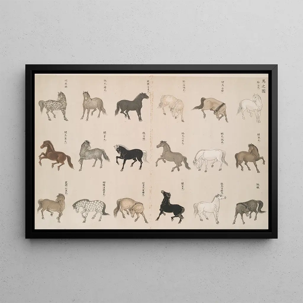 The art print of An illustration of horses is a decorative choice that will appeal to art and nature enthusiasts. Whether in an office, a living room, or a bedroom, this canvas adds a touch of elegance and serenity to your space. Its printing quality ensures remarkable fidelity to the details and colors of the original work, making this art print a central element of your decoration. By integrating this piece into your interior, you create an inspiring and refined atmosphere, while celebrating the beauty of horses.