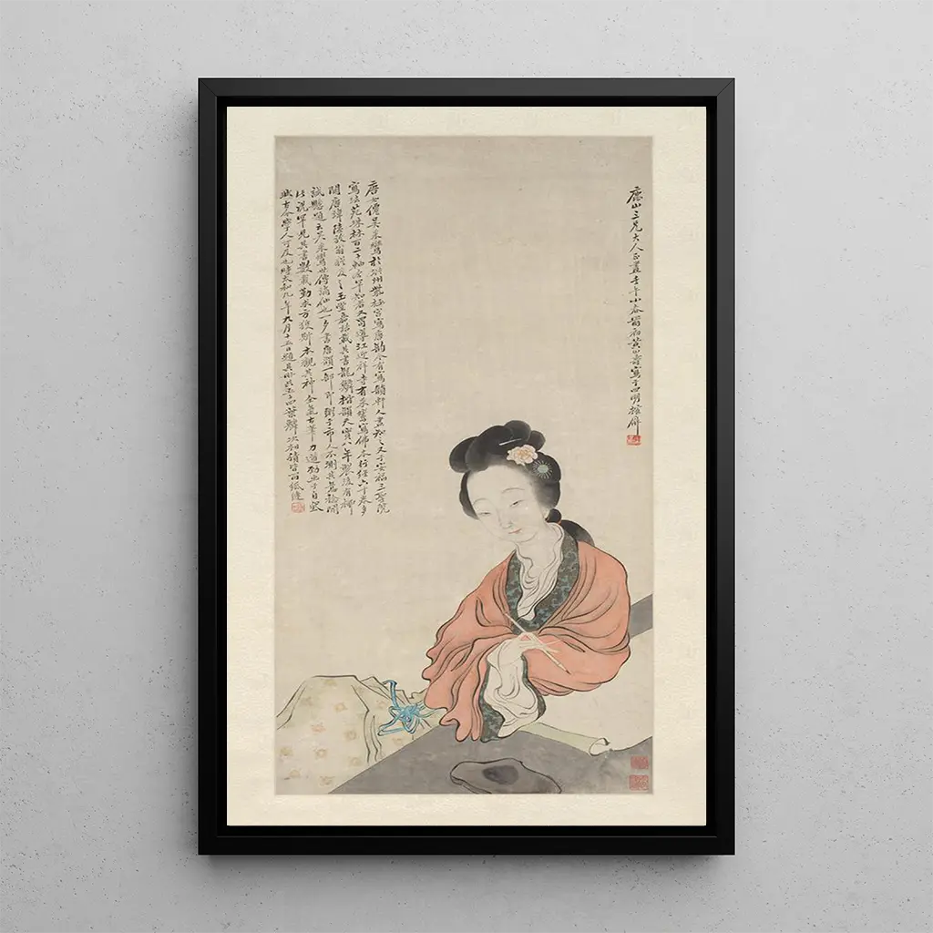 An Eternal Lady: A Tribute to Feminine Grace The art print of Huang Shanshou's "An Eternal Lady" evokes timeless beauty, capturing the very essence of femininity. This canvas, rich in detail, features a woman dressed in traditional robes, surrounded by natural elements that enhance her delicate presence. The soft colors and refined motifs create a serene atmosphere, inviting contemplation. The painting technique, typical of Chinese art, highlights the fluidity of lines and the subtlety of shades, making this work both poetic and captivating. Huang Shanshou: an artist at the heart of Chinese tradition Huang Shanshou is a 20th-century Chinese painter whose work continues the artistic traditions of his country. Raised in a culture-rich environment, he was influenced by classical masters while seeking to modernize his approach. His style is characterized by a blend of traditional and contemporary elements, allowing him to create works that resonate with today's audience. "An Eternal Lady" is a perfect example of his ability to fuse classical beauty with modern sensibility, demonstrating his significance in the Chinese art scene. A decorative art print with multiple virtues The reproduction of "An Eternal Lady" is a decorative choice that will add a touch of elegance to your interior, whether in a living room, office, or bedroom. Its printing quality ensures impressive fidelity to the details and colors of the original artwork, allowing you to enjoy every nuance. By integrating this art print into your decor, you create a space imbued with serenity and beauty, while paying homage to Chinese art. This piece will delight your guests and enrich your environment with an aura of timeless grace.