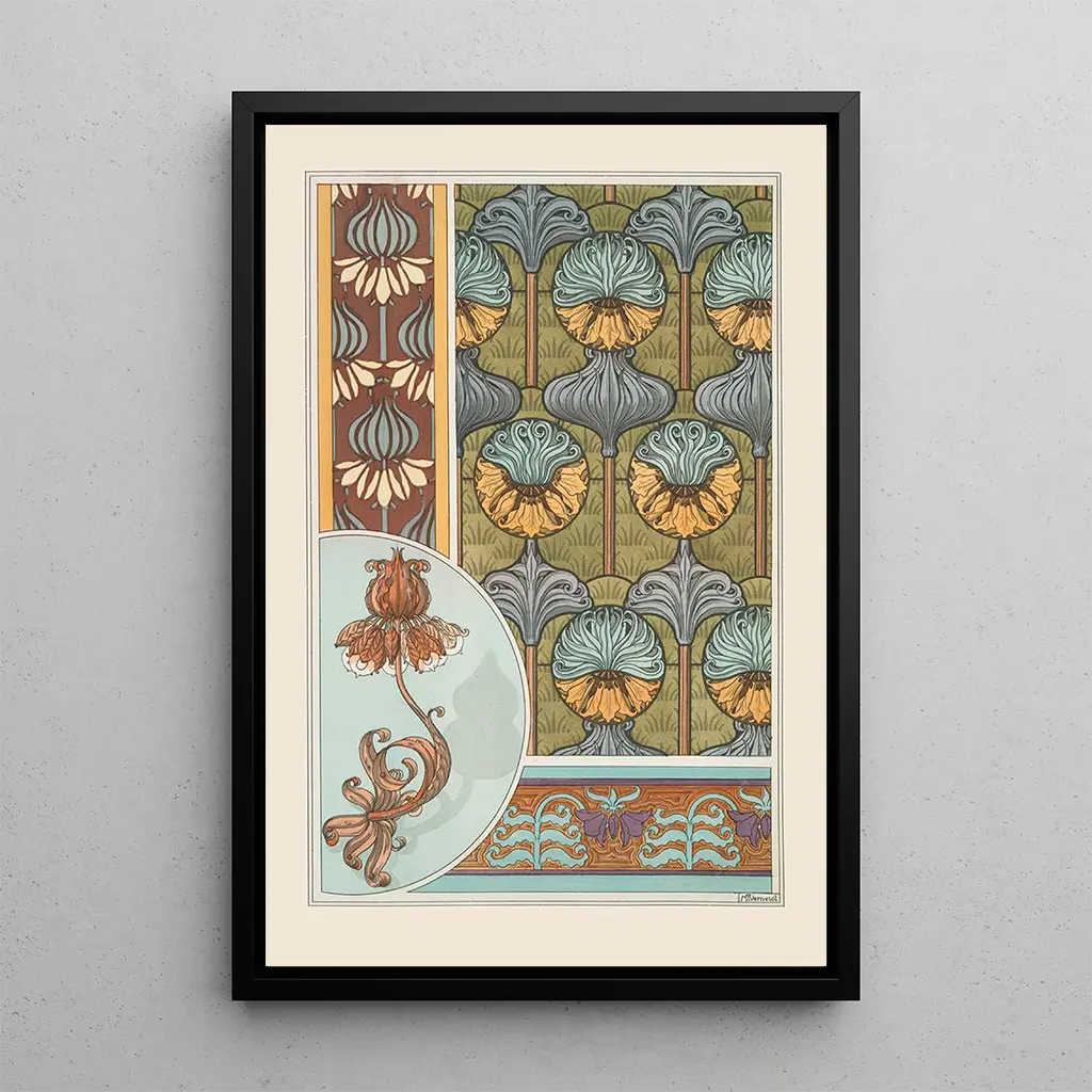 Couronne impériale 2 : an ode to floral majesty The art print of the Couronne impériale 2 by Maurice Pillard Verneuil evokes a lush universe where nature flourishes in a burst of vivid colors. The floral motifs, delicately arranged, unfold with exquisite grace, creating an atmosphere that is both festive and soothing. The watercolor technique, used with mastery, gives the piece a lightness and transparency that invite contemplation. Every detail, every shade of color, seems to vibrate under the light, transporting the viewer to a secret garden where beauty reigns supreme. Maurice Pillard Verneuil: a pioneer of the Art Nouveau movement Maurice Pillard Verneuil, an emblematic figure of Art Nouveau, knew how to marry art and nature with a unique sensitivity. Born in 1856, this French artist was influenced by the artistic currents of his time, notably Japonism and symbolism. His career spans the late 19th and early 20th centuries, a period during which he helped redefine the aesthetic codes of his era. Verneuil also collaborated with artisans, integrating his floral motifs into textile creations and decorative objects, thus reinforcing the importance of art in everyday life. A decorative acquisition with multiple assets The art print of Couronne impériale 2 is an ideal decorative choice to enhance any space, whether a living room, an office, or a bedroom. Its print quality and fidelity to the original work guarantee an enriching visual experience. With its undeniable aesthetic appeal, this artwork adds a touch of sophistication and nature to your interior. By choosing this canvas, you not only invite floral beauty into your decor but also a piece of artistic history that will captivate your guests and enrich your environment.
