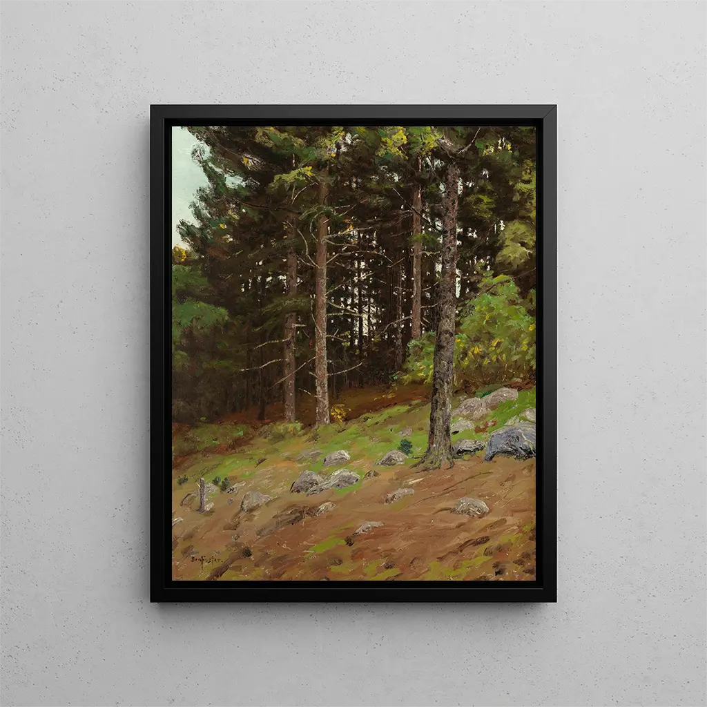 In the enchanting world of art, some works manage to capture the very essence of a landscape, transcending mere observation to immerse the viewer in a unique sensory experience. "Dans les pins - Ben Foster" is one of those creations that, through its beauty and depth, invites meditative contemplation. The piece evokes not only the magnificence of nature but also an atmosphere of serenity, where every detail seems to vibrate with its own life. Standing before this art print, one feels an immediate connection with the natural world, as if the pines, majestic and silent, whisper their secrets to the ear of the attentive observer.