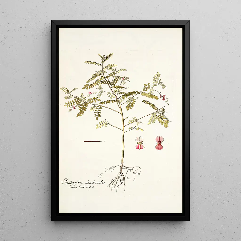 The art print "Indigofera dendroides" by Nikolaus Joseph Freiherr von Jacquin is a delicate botanical reproduction that invites exploration of the beauty of plants. With vibrant shades of green and blue, this art print evokes the richness of tropical flora. The precision of details, typical of naturalist drawing techniques, creates an atmosphere of serenity and wonder. Each leaf and flower seems to capture the light, offering an almost lifelike vision of this rare species. This artwork, both scientific and artistic, transports us to a universe where nature is showcased with remarkable finesse.