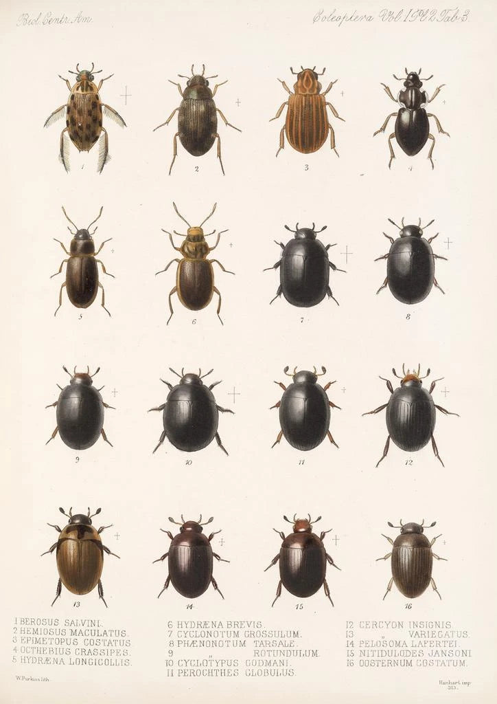 The artwork "Insecta Coleoptera Pl 040" by Frederick DuCane Godman is a true ode to the diversity of beetles. With a vibrant color palette ranging from bright greens to earthy browns, this art print captures the eye and invites exploration. The precision of the details, achieved through meticulous engraving techniques, allows for discovering the beauty and complexity of these insects. The atmosphere conveyed by this piece is both scientific and poetic, evoking a rich and fascinating natural world where each species has its own role to play.