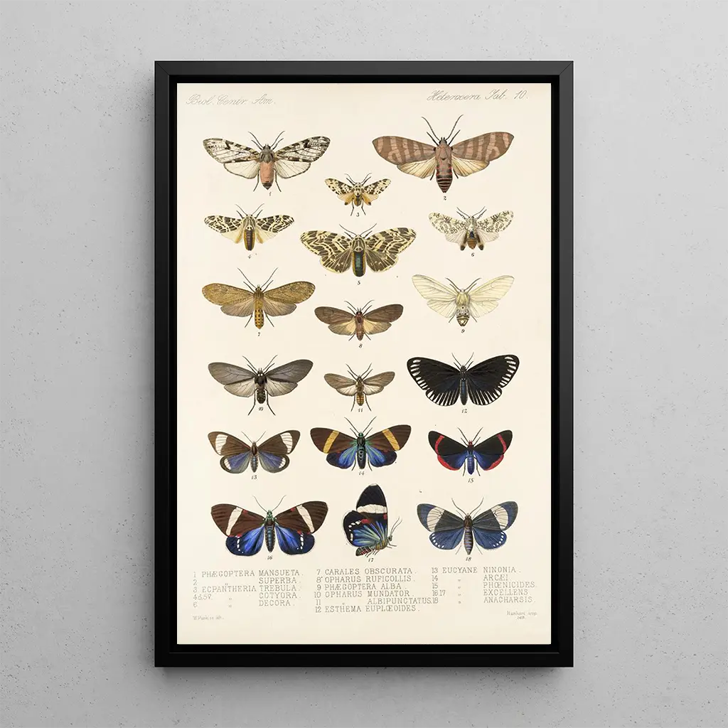 Insecta Lepidoptera Heterocera Pl 010: A celebration of entomological diversity The artwork "Insecta Lepidoptera Heterocera Pl 010" by Frederick DuCane Godman is a captivating illustration that captures the beauty and complexity of nocturnal butterflies. The composition highlights intricate details, revealing delicate textures on the insects' wings. The vibrant colors, ranging from earthy tones to dazzling shades, create an atmosphere that is both lively and soothing. Godman, with his refined watercolor technique, manages to convey a sense of wonder at nature, inviting viewers to explore the hidden world of lepidopterans. Frederick DuCane Godman: a pioneer of artistic entomology Frederick DuCane Godman, active in the 19th century, is recognized for his significant contributions to the study of insects, particularly butterflies. Influenced by the scientific discoveries of his time, he skillfully combined art and science, making his works not only aesthetic but also educational. Godman collaborated with other naturalists and illustrators, enriching his artistic approach. His work in the field of entomology has left a lasting legacy, establishing him as an essential figure for those interested in the representation of insects in art. A decorative acquisition with multiple advantages The art print of "Insecta Lepidoptera Heterocera Pl 010" is an ideal decorative choice for various spaces such as the living room, office, or even the bedroom. Its print quality and fidelity to the original details make it a captivating art piece that draws the eye. By incorporating this artwork into your interior decor, you add a touch of elegance and erudition, while celebrating the beauty of nature. This canvas, with its undeniable aesthetic appeal, will enrich your environment while sparking fascinating conversations about entomology.
