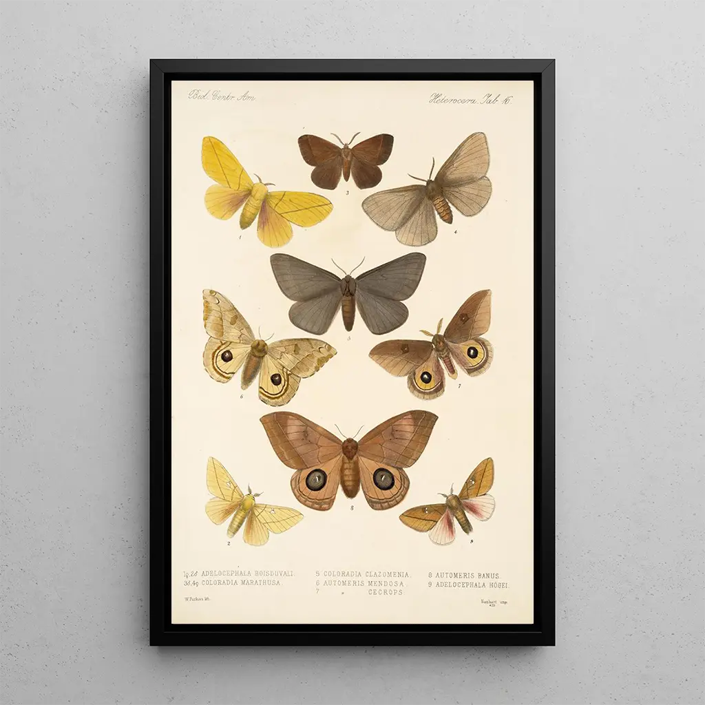 The artwork "Insecta Lepidoptera Heterocera Pl 016" by Frederick DuCane Godman is a captivating representation of the diversity of moths. The delicate composition highlights vibrant colors and intricate details, revealing the hidden beauty of these often little-known creatures. Through refined watercolor techniques, Godman manages to capture the light and textures of the wings, creating an atmosphere that is both poetic and scientific. Each element of this art print invites careful contemplation, emphasizing the harmony between art and nature.