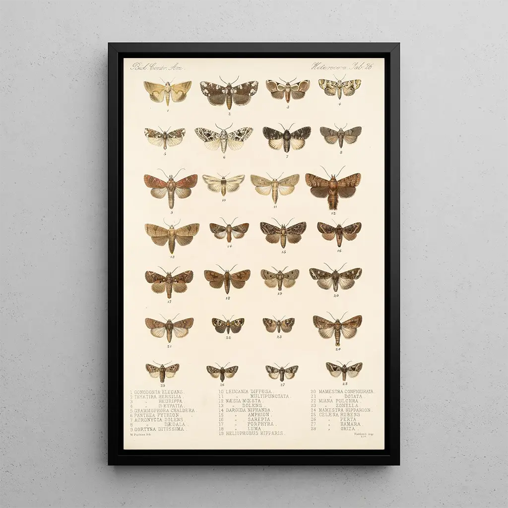 Insecta Lepidoptera Heterocera Pl 026 : a delicate dance of nocturnal butterflies The art print Insecta Lepidoptera Heterocera Pl 026 offers a fascinating glimpse into the world of moths. With shimmering colors and meticulous details, this piece invites attentive contemplation. The shades of blue, green, and yellow blend harmoniously, creating an atmosphere that is both mysterious and enchanting. The engraving technique used by Frederick DuCane Godman captures the lightness and grace of these insects, making each specimen almost alive. The work evokes a deep connection with nature, reminding us of the fragile beauty of biodiversity. Frederick DuCane Godman: a pioneer of artistic entomology Frederick DuCane Godman was a 19th-century British naturalist and artist, recognized for his contributions to the study of insects, particularly butterflies. His work is part of the Victorian movement, where scientific exploration and art often intertwined. Influenced by the discoveries of his time, Godman collaborated with other entomologists to produce works that combine scientific precision with aesthetic appeal. His passion for nature and his desire to document the diversity of species made him an important figure in the field of entomology, and his art prints continue to inspire art lovers and natural sciences enthusiasts. A decorative acquisition with multiple advantages The art print of the painting Insecta Lepidoptera Heterocera Pl 026 makes an ideal decorative addition to various spaces, whether in a living room, office, or bedroom. Its print quality and fidelity to the original details make it a captivating art piece that draws the eye. By incorporating this canvas into your decor, you add a touch of elegance and curiosity, while celebrating the beauty of nature. With its aesthetic appeal, this work is not only a decorative choice but also an invitation to explore the fascinating world of insects.