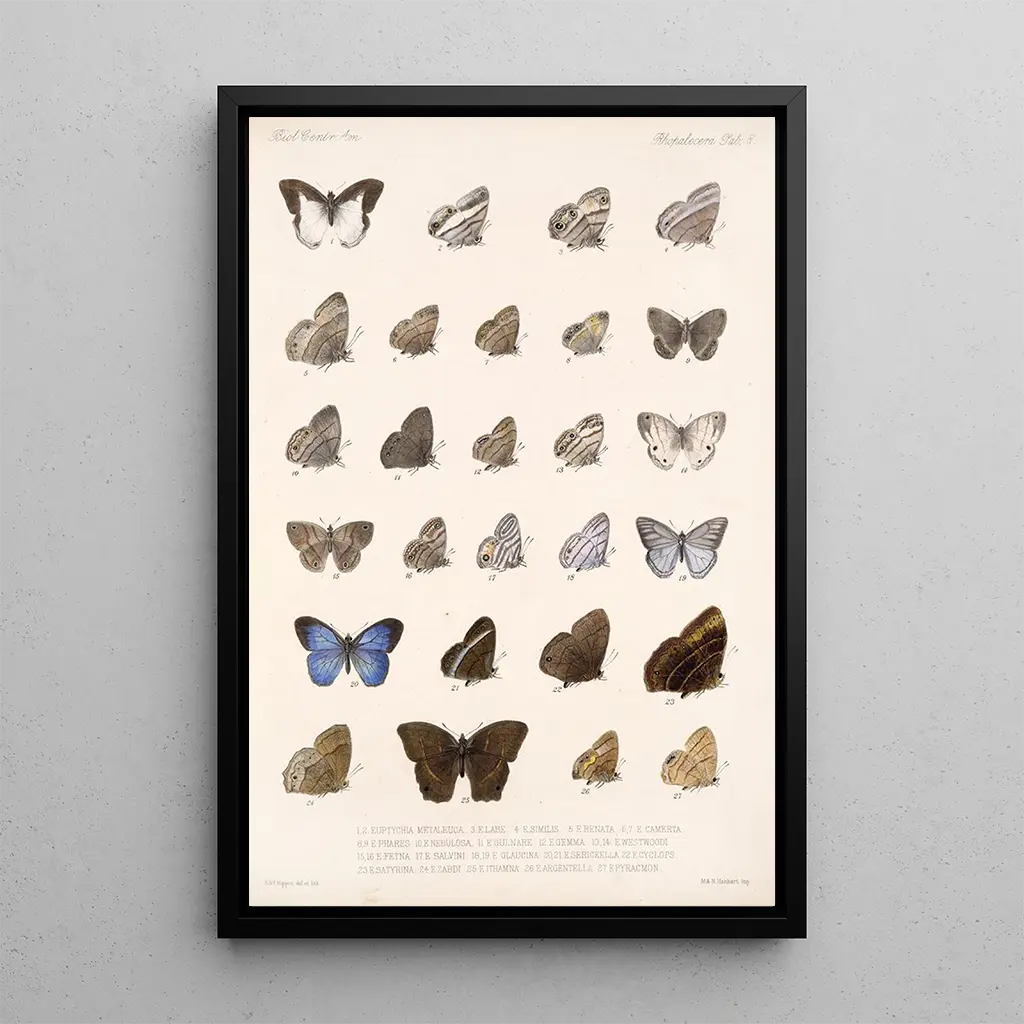 Insecta Lepidoptera Rhopalocera Pl 008: a celebration of the beauty of butterflies The art print Insecta Lepidoptera Rhopalocera Pl 008 is a true ode to the delicacy of butterflies. With its vibrant colors and meticulous details, this piece immediately captures the eye. The shades of blue, yellow, and orange blend harmoniously, creating a lively and joyful atmosphere. The engraving technique used by the artist allows each wing to be rendered with remarkable precision, highlighting the unique patterns that adorn these fascinating insects. This canvas invites attentive contemplation, revealing the ephemeral beauty of nature. Frederick DuCane Godman: a pioneer of entomological illustration Frederick DuCane Godman is an essential name in the field of scientific illustration, particularly in the study of lepidoptera. Active in the 19th century, he dedicated his life to researching and documenting butterflies, influenced by the discoveries of his time and exploration voyages. Godman collaborated with other naturalists, which enriched his knowledge and artistic approach. His works, like this art print, demonstrate the importance of scientific accuracy combined with refined aesthetics, making him an iconic figure of naturalist illustration. A decorative acquisition with multiple advantages The reproduction of the painting Insecta Lepidoptera Rhopalocera Pl 008 is a decorative piece that fits perfectly into various spaces, whether in a living room, office, or bedroom. Its print quality and fidelity to the original details make it an ideal choice for nature and art enthusiasts. The aesthetic appeal of this canvas, with its vibrant colors and captivating design, brings a touch of freshness and sophistication to any interior. By choosing this artwork, you opt for a decoration that evokes the beauty of the natural world while adding an artistic dimension to your space.