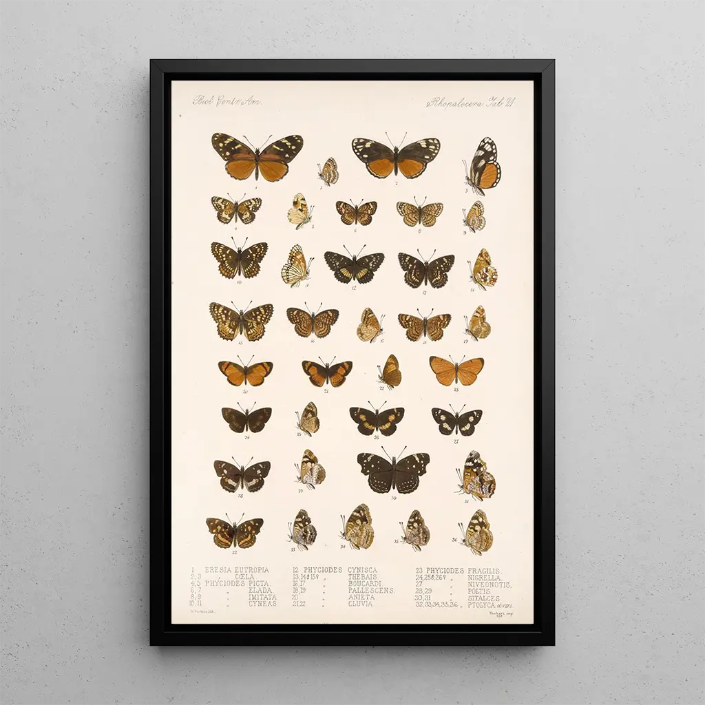 Insecta Lepidoptera Rhopalocera Pl 021: a tribute to species diversity The art print Insecta Lepidoptera Rhopalocera Pl 021 stands out for its striking depiction of butterfly diversity. Each specimen is illustrated with remarkable detail, highlighting the nuances of color and the unique patterns that characterize these fascinating insects. The shimmering hues, ranging from vibrant oranges to subtle greens, create a captivating visual harmony. The atmosphere emanating from this canvas is both joyful and contemplative, inviting the viewer to delve into the delicate world of Lepidoptera. The artist's technique, combining precision and sensitivity, makes this work a true masterpiece of naturalist illustration. Frederick DuCane Godman: art in the service of science Frederick DuCane Godman, an emblematic figure of the 19th century, skillfully combined his passion for entomology with his artistic talent. As an illustrator and naturalist, he produced works that have become references in the field of entomology. Godman was influenced by the scientific discoveries of his time, aiming to faithfully represent the beauty and complexity of species. His works, such as this art print, testify to his commitment to science and art, making him a pioneer in scientific illustration. His legacy endures through his illustrations, which continue to inspire and inform. A decorative acquisition with multiple advantages The art print of the painting Insecta Lepidoptera Rhopalocera Pl 021 is a perfect choice to enhance your interior decor. Whether in a living room, office, or bedroom, this canvas will add a touch of elegance and freshness. Its printing quality ensures remarkable fidelity to the details and colors of the original work, offering undeniable visual appeal. By integrating this art print into your space, you create an inspiring and soothing atmosphere, while celebrating the beauty of nature. It is a decorative piece that will captivate attention and evoke admiration from your guests.