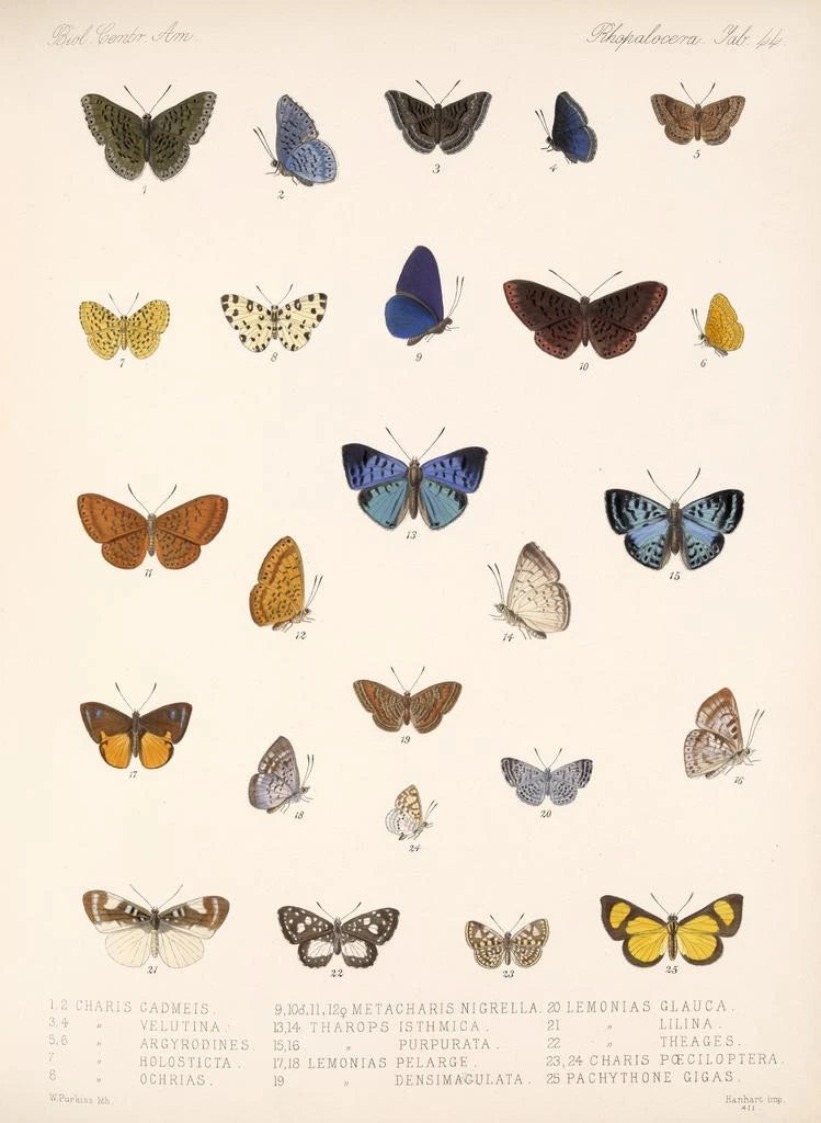 Frederick DuCane Godman, a 19th-century naturalist and illustrator, played a vital role in documenting butterfly species. His work aligns with the Victorian movement, where interest in nature and science was flourishing. Influenced by his travels and encounters with other scientists, Godman managed to combine scientific rigor with artistic sensitivity. His contribution to the study of Lepidoptera is invaluable, and his illustrations, such as the one in Insecta Lepidoptera Rhopalocera Pl 045, demonstrate his commitment to nature preservation.