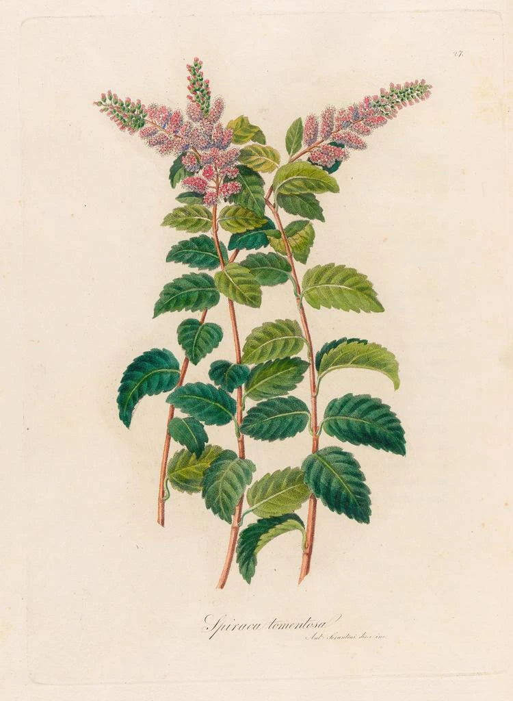 La reproduction de Spirée tomenteuse, œuvre de Gaetano Savi, se distingue par son éclat et sa vivacité. Les teintes pastel, allant du rose au blanc, se mêlent harmonieusement, créant une atmosphère douce et apaisante. La technique de Savi, qui combine une observation minutieuse et un sens artistique aiguisé, donne vie à cette plante, rendant hommage à sa beauté naturelle. Chaque détail, des feuilles délicates aux fleurs épanouies, est soigneusement représenté, offrant une immersion totale dans le monde végétal. Cette toile invite à la contemplation et à l'émerveillement devant la richesse de la nature.