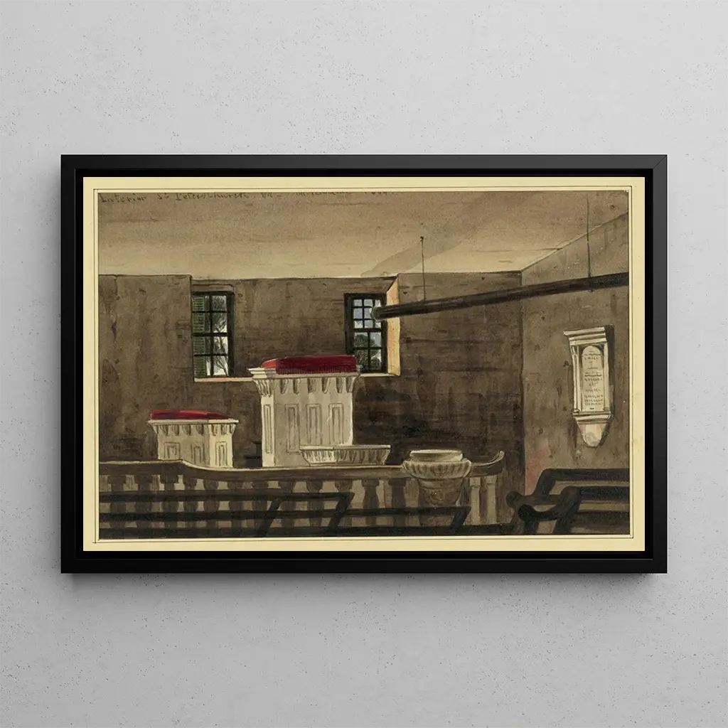 The artwork "Interior of Saint Peter's Church" by William McIlvaine transports us to the heart of a sacred space, where light plays a fundamental role. The warm, golden colors blend harmoniously with shadows, creating an atmosphere of serenity and contemplation. McIlvaine's technique, which combines precision and sensitivity, allows us to feel the grandeur of the architecture while highlighting the delicate details of the ornaments. Each brushstroke seems to capture the very essence of this iconic building, inviting the viewer to meditative reflection.