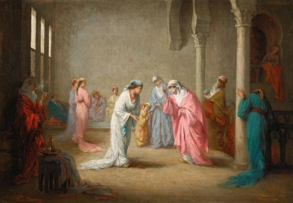 Henriette Browne, a 19th-century artist, is recognized for her depictions of oriental life, often marked by a feminine sensitivity. Born in France, she was influenced by the orientalism currents of her time, which sought to explore and portray distant cultures. Browne traveled to the Orient, enriching her work with rare authenticity. Her style is distinguished by a particular attention to detail and a palette of vibrant colors, characteristic of orientalism. Through her paintings, she contributed to redefining the feminine representation in art, offering a nuanced and poetic vision of life in the harems.