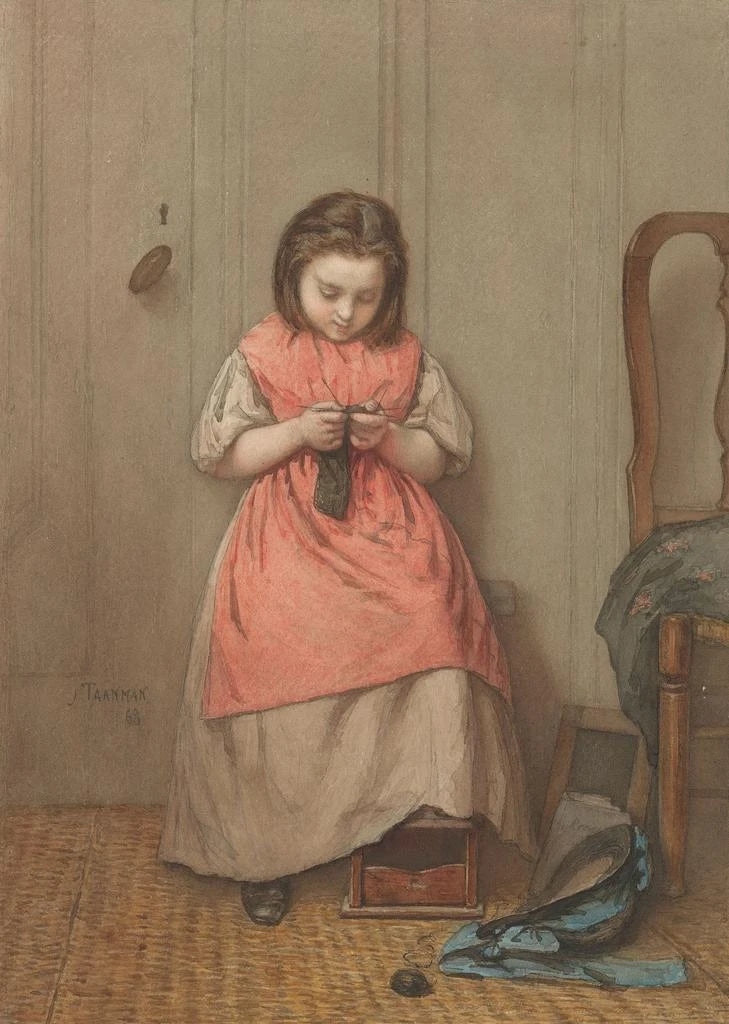 Interior painting with girl knitting - Jacob Taanman | Art print
