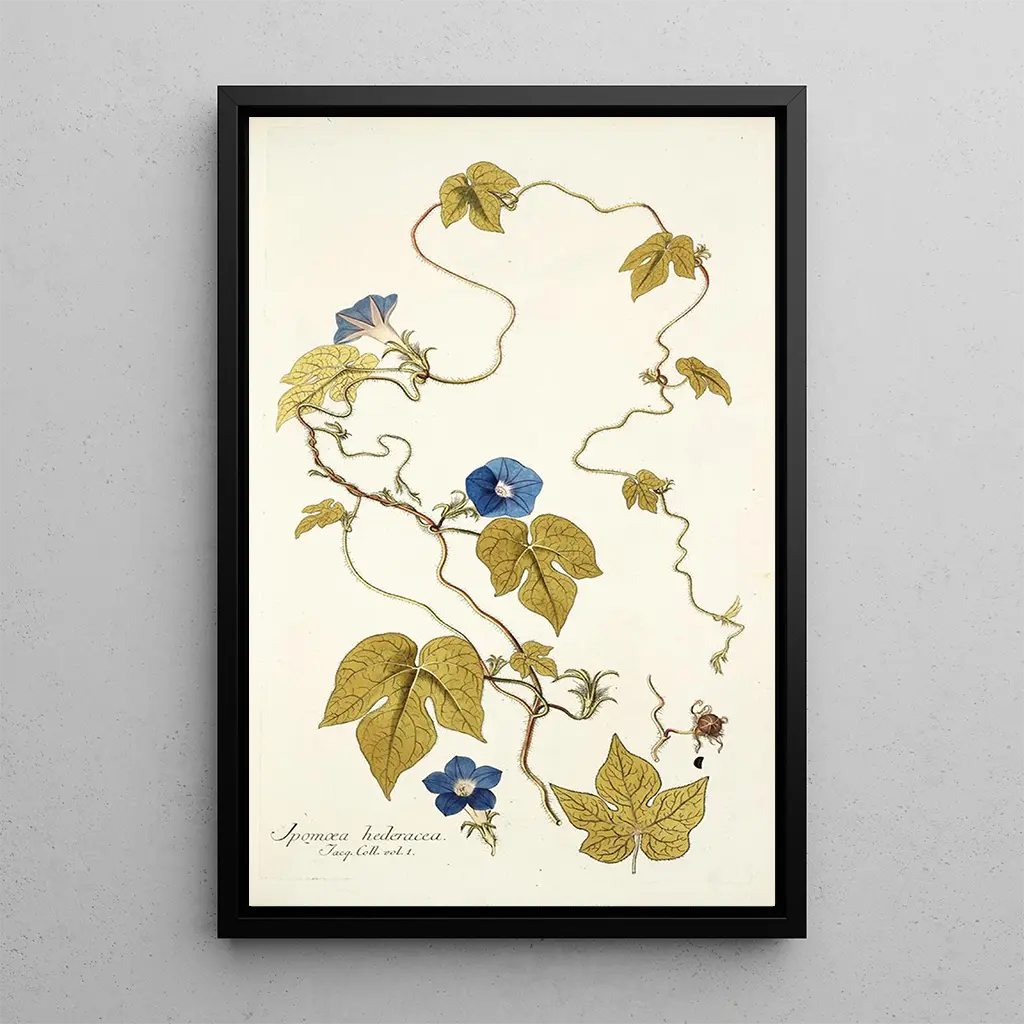 Ipomoea hederacea : a floral dance at the heart of nature The art print "Ipomoea hederacea" by Nikolaus Joseph Freiherr von Jacquin transports us into a rich and vibrant botanical universe. This reproduction, which captures the delicate beauty of the climbing plant, stands out with its vivid colors and harmonious composition. The shades of green, violet, and white intertwine to create a lively and joyful atmosphere. The artist's technique, blending scientific precision with artistic sensitivity, invites us to admire the complexity of nature while offering a poetic vision of the flowers. Each petal seems to vibrate under the light, revealing the ephemeral beauty of this plant. Nikolaus Joseph Freiherr von Jacquin: the scholar at the service of botany Nikolaus Joseph Freiherr von Jacquin, botanist and artist of the 18th century, played a key role in the study of exotic plants. Born in 1727 in Austria, he traveled around the world, notably in America, to collect botanical specimens. His work sits at the crossroads of art and science, reflecting the Enlightenment spirit where knowledge and aesthetics converge. Jacquin was influenced by the discoveries of his time and contributed to the classification of plants, while immortalizing them on canvas. "Ipomoea hederacea" testifies to his commitment to paying homage to the beauty of nature while educating his audience about floral diversity. A decorative acquisition with multiple assets Choosing the art print of "Ipomoea hederacea" is a wise choice to enhance your interior. Whether in a living room, office, or bedroom, this reproduction brings a touch of freshness and vitality. Its printing quality guarantees fidelity to the colors and details of the original work, allowing each viewer to feel the energy of nature. The aesthetic appeal of this canvas, with its delicate floral motifs, makes it a decorative element that inspires admiration and contemplation. By integrating this piece into your space, you create a serene and inspiring atmosphere, conducive to escape.
