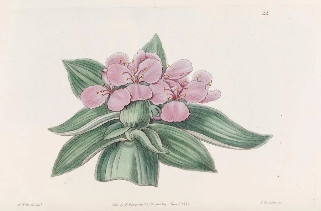 Sydenham Edwards, an 18th-century botanist and illustrator, is renowned for his contributions to botanical illustration. A member of the Royal Society, he dedicated his life to the study and depiction of plants. His work "Tradescantia iridescente" is part of a series celebrating the diversity of plant species. Edwards mastered combining scientific accuracy with aesthetic appeal, making his illustrations both informative and artistic. His work has had a significant impact on botany and art, inspiring many artists and scientists through the centuries.