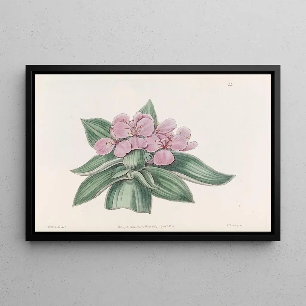 The art print "Tradescantia iridescente" by Sydenham Edwards is a true homage to the beauty of nature. This botanical artwork features a plant with shimmering leaves, capturing light in a fascinating way. The shades of green, purple, and silver blend harmoniously, creating a calming and invigorating atmosphere. The engraving technique used by Edwards highlights the delicate details of the plant, offering an almost tactile view of this natural wonder. This canvas invites contemplation and wonder, adding a touch of freshness to your decor.