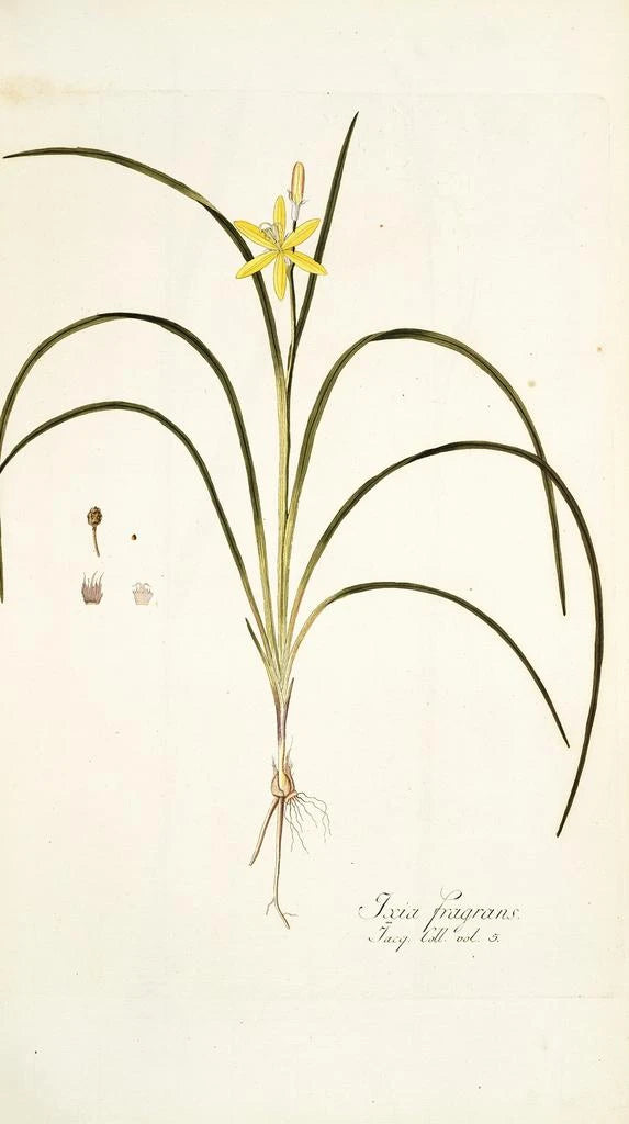 Nikolaus Joseph Freiherr von Jacquin was an 18th-century Austrian botanist and artist, known for his contributions to botanical science and floral art. His travels in South America enriched his knowledge and inspiration, allowing him to depict rare floral species with remarkable accuracy. Jacquin was able to combine his love for nature with his artistic talent, making him an essential figure of his time. His work, notably Ixia fragrans, reflects the harmony between art and science, uniting meticulous observation and aesthetics.