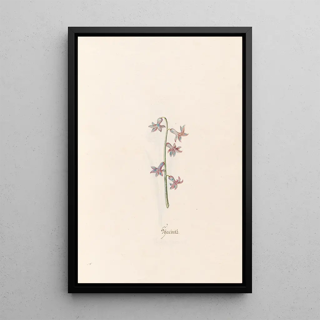The art print Jacinthes by Magdalena Rosina Funck evokes a lush garden where flowers bloom in a dance of vibrant colors. The hyacinths, with their shades ranging from deep violet to delicate pink, are carefully arranged, creating a harmonious composition that draws the eye. The oil painting technique captures the velvety texture of the petals, while the light plays on the surfaces, adding an almost tactile dimension to the work. The atmosphere conveyed by this canvas is both soothing and joyful, inviting contemplation of the ephemeral beauty of nature.