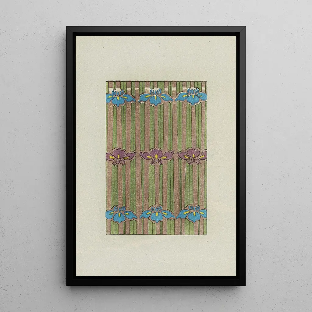 The art print of Bijutsukai Pl9, an iconic work by Furuya Korin, stands out for its bold use of colors and patterns. The vivid and contrasting hues create a vibrant, almost living atmosphere that immediately captures the eye. The artist's technique, blending watercolor and ink, gives the canvas a lightness and fluidity, evoking the ephemeral beauty of nature. Floral elements and stylized motifs intertwine harmoniously, inviting the viewer to immerse themselves in a world of serenity and wonder.