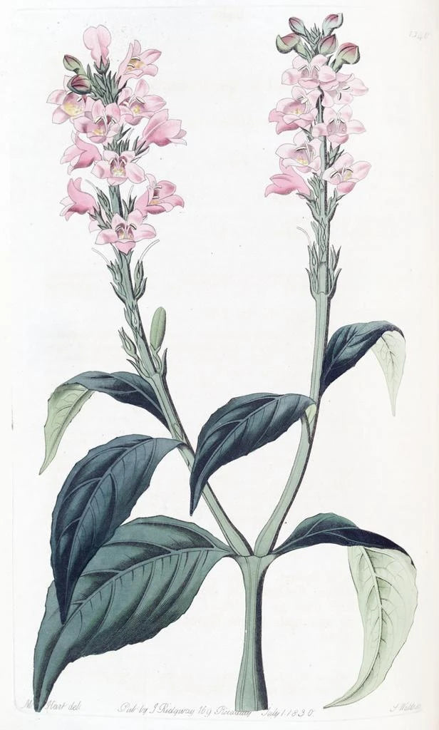Sydenham Edwards is an iconic figure of 19th-century botanical illustration. His work, influenced by the scientific advances of his time, successfully merged art and botany in an unprecedented way. As an illustrator for reference works, he captured the essence of plants with remarkable accuracy. The Justicia with a square stem perfectly illustrates his talent, where each flower is depicted with fidelity that reflects his commitment to science and aesthetics.
