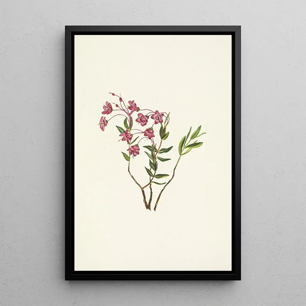 Kalmia of the Rocky Mountains: a tribute to wild nature The art print of Kalmia of the Rocky Mountains, created by Mary Vaux Walcott, immerses us in a floral universe of striking beauty. This piece highlights the delicacy of Kalmia microphylla flowers, with shades ranging from pale pink to deep violet. The watercolor technique used by the artist lends a lightness to the composition, while the meticulous details of the petals and leaves capture the very essence of this iconic mountain plant. The atmosphere conveyed by this artwork evokes a walk in nature, where each flower seems to vibrate with the rhythm of the wind. Mary Vaux Walcott: a pioneer of botanical art Mary Vaux Walcott, active in the early 20th century, is recognized for her contributions to botanical art and nature conservation. Influenced by the naturalist movement, she dedicated her life to studying and depicting American plants, particularly those from mountainous regions. Her works, often created outdoors, reflect her commitment to preserving flora. Walcott was also a passionate advocate for national parks, highlighting the importance of her work in the context of environmental conservation. Her artistic approach combines scientific precision with aesthetic sensitivity, making her an essential figure of her time. A decorative acquisition with multiple assets The art print of Kalmia of the Rocky Mountains is a decorative piece that seamlessly fits into various spaces, whether a living room, office, or bedroom. Its print quality and fidelity to the original colors make it an ideal choice for those wishing to bring a touch of nature into their interior. With its aesthetic appeal, this canvas draws the eye and sparks conversations, while creating a calming atmosphere. By choosing this artwork, you opt for a decoration that celebrates the beauty of flora while enriching your living space.