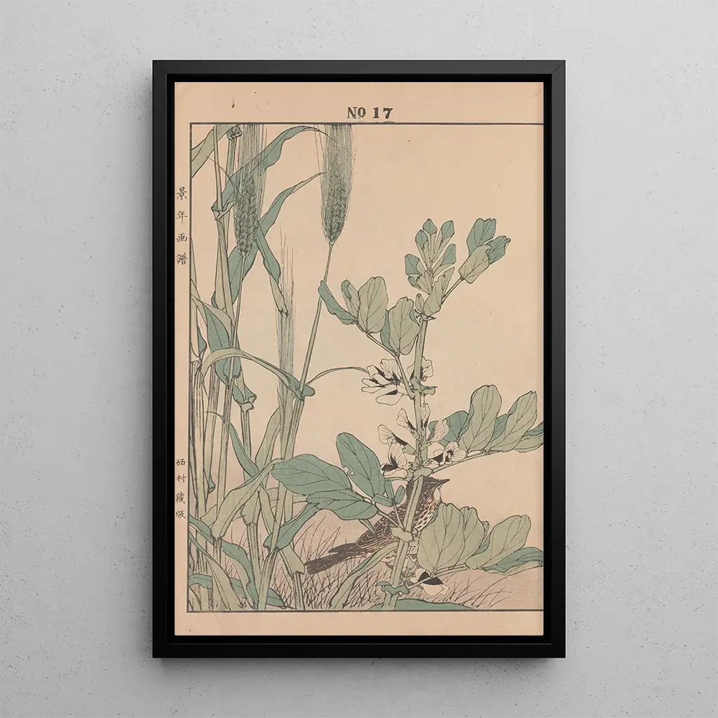 Keinen kach gafu Pl063 art print takes us into a vibrant world of colors and floral details. This piece, created with a refined printmaking technique, highlights the richness of Japanese flora through delicate and harmonious motifs. The subtle shades of green, pink, and yellow blend to create an atmosphere that is both lively and soothing. Every element of the composition is carefully arranged, inviting the viewer to explore the beauty of nature while absorbing the serenity it exudes.