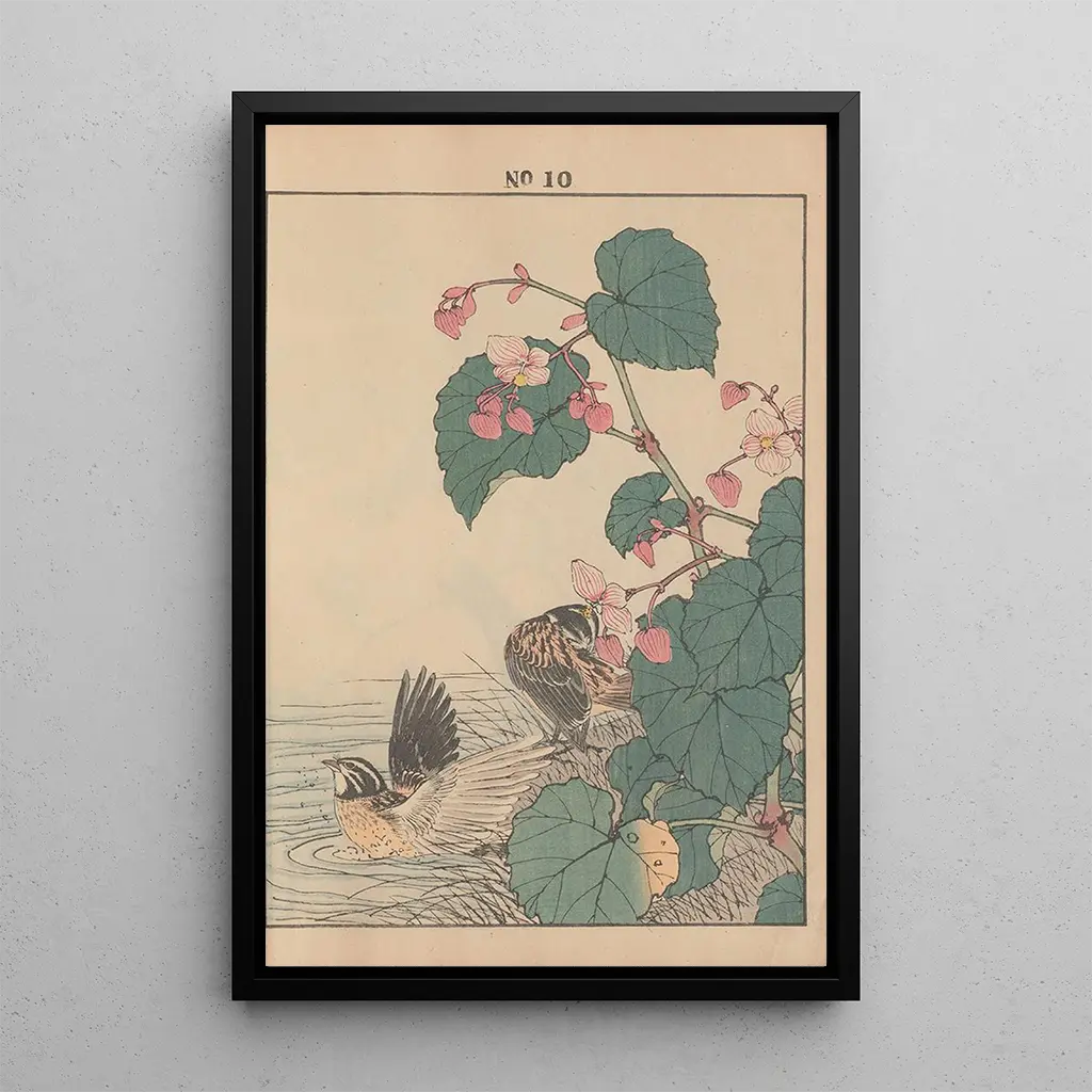 The art print of Keinen kach gafu Pl012 immerses us in a world where nature is celebrated with infinite delicacy. The soft, pastel colors blend harmoniously to create a soothing atmosphere, while the technique of the Japanese print highlights every detail of the flowers and birds. The piece evokes a perfect harmony between man and his environment, inviting contemplation and serenity. The floral motifs, typical of Japanese art, are rendered with remarkable precision, offering a glimpse of the ephemeral beauty of nature.