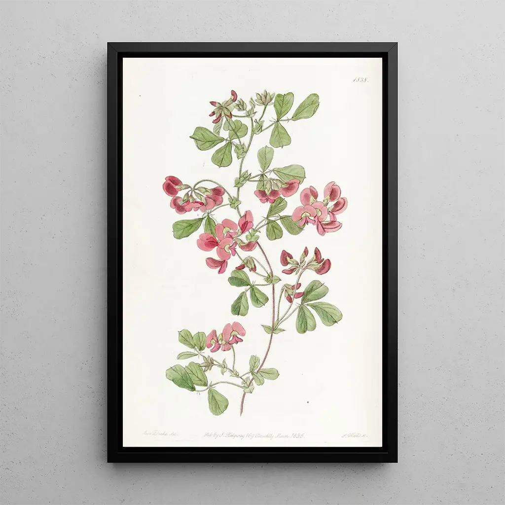 The art print of the Kennedya with smooth leaves, created by Sydenham Edwards, immerses us in a botanical universe of great delicacy. The vibrant shades of green and red blend harmoniously, while the intricate details of the leaves and flowers reveal impressive technical mastery. Edwards, as a botanical illustrator, manages to capture the very essence of this plant, evoking an atmosphere that is both serene and lively. Each brushstroke seems to tell a story, inviting the viewer to marvel at the beauty of nature.