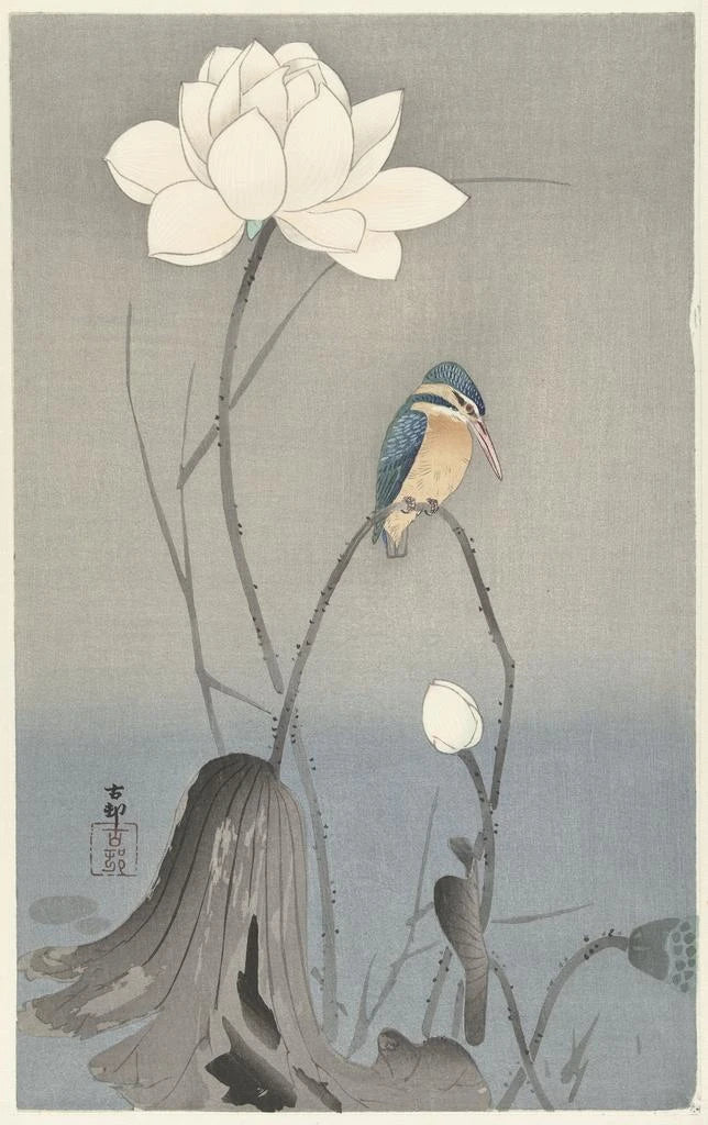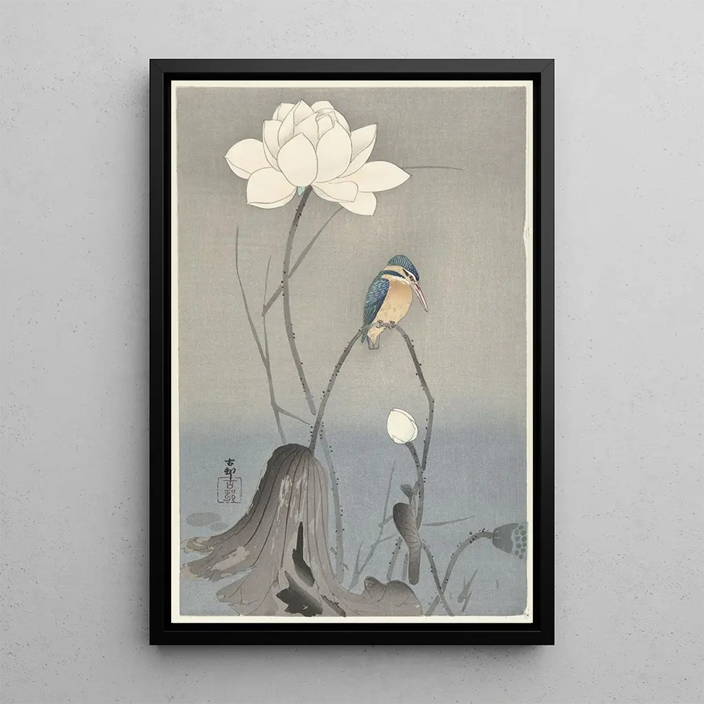 Art print | Kingfisher with lotus flower - Ohara Koson