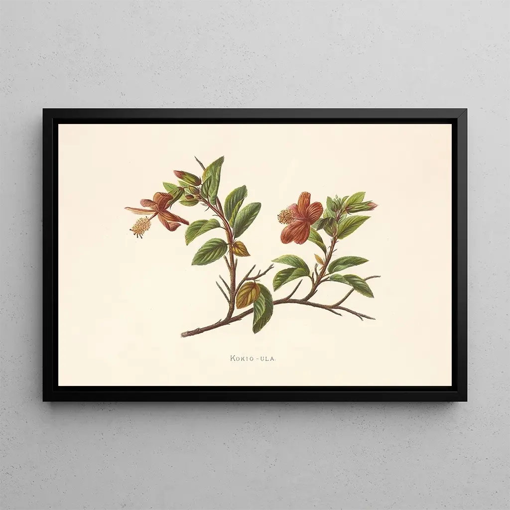 The art print Kokio Ula by Isabella McHutcheson Sinclair evokes the splendor of tropical landscapes, where lush vegetation and vibrant colors meet. The warm shades of red and orange, combined with bright greens, create an enchanting, almost magical atmosphere. Sinclair manages to capture the very essence of the islands, transporting the viewer to a world where nature reigns supreme. Every brushstroke seems to breathe life, offering an invitation to escape and dream.