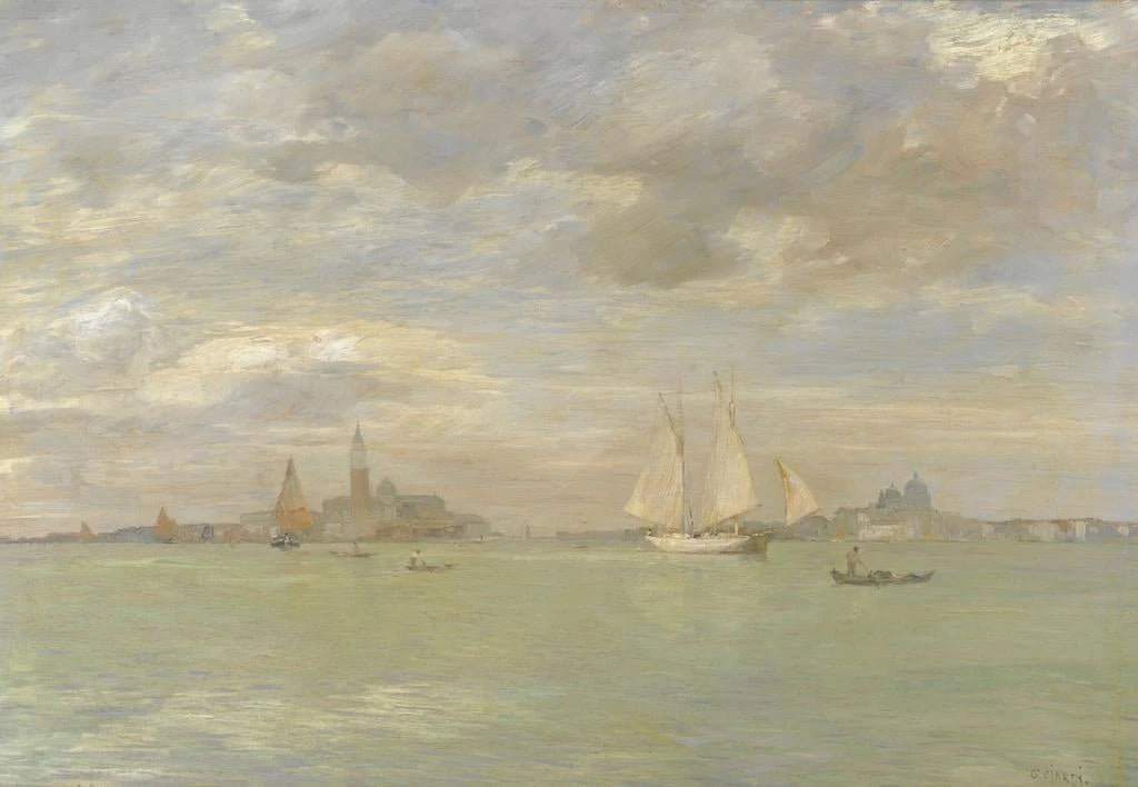 Venice Lagoon: an ode to Venetian serenity The art print of Venice Lagoon by Guglielmo Ciardi evokes the magic of the calm waters of the lagoon, where the reflections of historic buildings dance on the shimmering surface. Shades of blue and green blend harmoniously, creating a peaceful and dreamy atmosphere. Ciardi's impressionist technique captures the light in a unique way, transforming each brushstroke into an invitation to explore the mysteries of this iconic city. This painting is a true window into Venice, where time seems to stand still. Guglielmo Ciardi: an artist of the Italian soul Guglielmo Ciardi, born in 1842, was an Italian painter whose work is part of the impressionist movement. Trained at the Academy of Fine Arts in Venice, he was influenced by Venetian landscapes and Mediterranean light. His career spanned the late 19th century, a period when Venice experienced an artistic revival. Ciardi was able to capture the essence of his hometown, blending tradition and modernity. His works are highly valued today for their ability to evoke deep emotions and their timeless beauty. A decorative acquisition with multiple assets The art print of Venice Lagoon makes a perfect decorative addition to any room in your home. Whether in a living room, office, or bedroom, this canvas adds a touch of elegance and serenity. Its high-quality printing ensures remarkable fidelity to the details and colors of the original work, creating a soothing atmosphere. The aesthetic appeal of this piece makes it an ideal choice for those who wish to bring the beauty of Venice into their daily life.