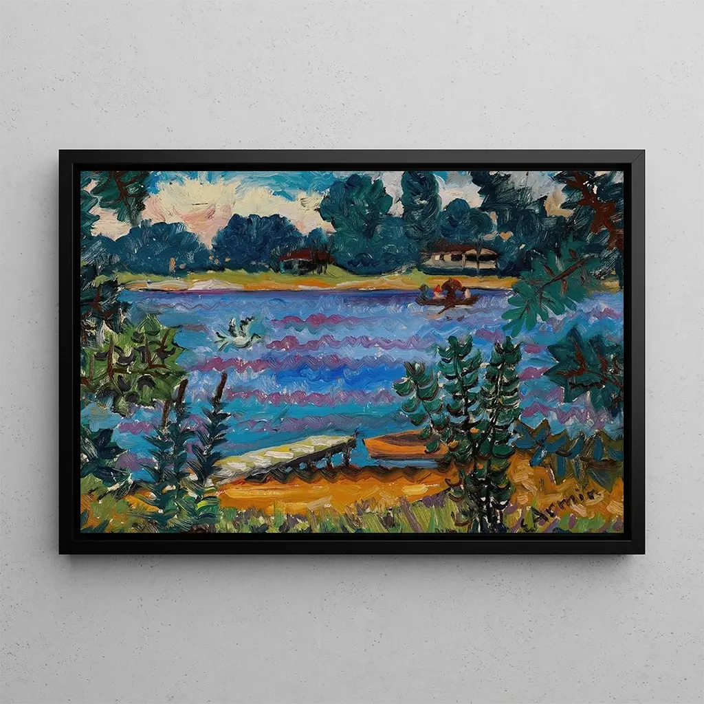 Lake of Woods: a reflection of natural serenity The art print "Lake of Woods" by Emil Armin evokes an atmosphere of tranquility and contemplation. The shades of green and blue blend harmoniously, creating a soothing palette that invites escape. The artist's technique, marked by delicate brushstrokes, brings to life the reflections of light on the water, while majestic trees frame the landscape. This piece, both realistic and impressionist, transports the viewer to a haven of peace, where nature reveals itself in all its splendor. Emil Armin: a master of light and color Emil Armin, an Estonian-born painter, captured the essence of nature through his art. Active in the early 20th century, he was influenced by Impressionist and Post-Impressionist movements, incorporating elements of light and color that characterize his unique style. His work is often associated with the depiction of Nordic landscapes, where the beauty of lakes and forests is highlighted. Armin left a lasting legacy in the art world, inspiring many artists to explore the nuances of nature. A decorative acquisition with multiple assets The art print of "Lake of Woods" is an ideal decorative piece to bring a touch of serenity to your interior. Whether in a living room, office, or bedroom, this canvas will create a calming and inspiring atmosphere. Its printing quality guarantees remarkable fidelity to the colors and details of the original artwork, while offering undeniable aesthetic appeal. By choosing this art print, you opt for a piece that will enrich your living space while celebrating the timeless beauty of nature.