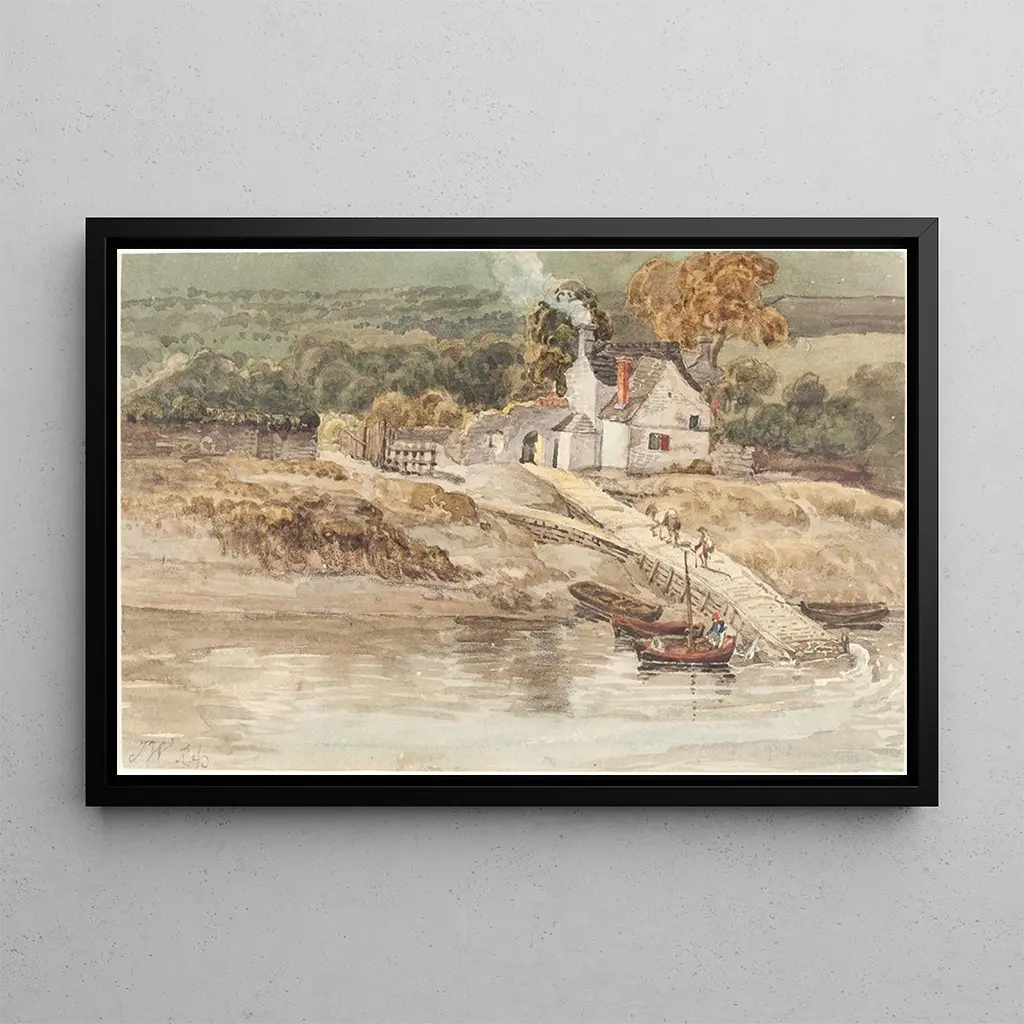 Location of disembarkation near Tintern Abbey: a harmony between nature and architecture The art print "Location of disembarkation near Tintern Abbey" by James Ward depicts a bucolic scene where nature and architecture meet gracefully. The composition highlights Tintern Abbey, majestic and serene, surrounded by lush greenery. The vibrant colors, ranging from deep greens to soothing blues, create an atmosphere of tranquility and beauty. Ward, with his oil painting technique, manages to capture light and shadow, bringing this enchanting landscape to life. Every element, from the trees to the ruins of the abbey, contributes to a sense of peace and harmony, inviting the viewer to a contemplative escape. James Ward: a painter of romantic landscapes James Ward, active in the early 19th century, is a British artist renowned for his romantic landscapes. Influenced by nature and architecture, he created works that celebrate the beauty of British scenery. His style, characterized by meticulous attention to detail and a rich palette, reflects the ideals of romanticism, where nature is often seen as a source of inspiration and reflection. "Location of disembarkation near Tintern Abbey" perfectly illustrates this approach, highlighting not only the majesty of the abbey but also the harmonious interaction between man and nature, a theme dear to the Romantic era. A decorative acquisition with multiple assets The art print of "Location of disembarkation near Tintern Abbey" is an ideal addition to your interior decor, whether in a living room, office, or bedroom. Its serene and contemplative ambiance brings a touch of nature and elegance to your space. The quality of the reproduction ensures remarkable fidelity to the details of the original work, allowing you to appreciate every nuance of color and light. With its aesthetic appeal, this canvas becomes a central element of your decor, inspiring admiration and reflection. Treat yourself to this piece to enrich your environment with timeless beauty.