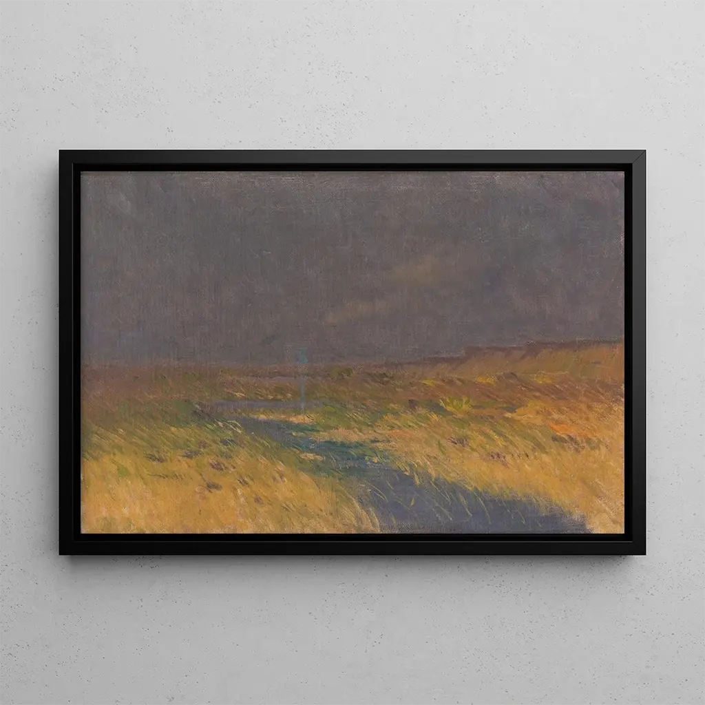 Paysage avant le soir: an ode to twilight beauty Paysage avant le soir, a work by Ferdinand Katona, immerses us in a magical atmosphere where day slowly gives way to night. The warm, golden colors of the twilight blend with emerging shadows, creating a lively and poetic tableau. Katona's technique, characterized by fluid and expressive brushstrokes, brings this landscape to life, where each element seems to vibrate under the fading light. This art print evokes a sense of calm and melancholy, inviting a contemplative pause in the face of the ephemeral beauty of the moment. Ferdinand Katona: a master of romantic landscape Ferdinand Katona, a Hungarian painter of the 19th century, is recognized for his ability to capture the beauty of landscapes through a romantic lens. Trained at the Budapest Academy of Fine Arts, he was influenced by European artistic movements of his time, notably Romanticism and Impressionism. His works, often inspired by nature, reflect his love for the landscapes of his homeland and beyond. Katona was able to convey deep emotion through his paintings, making him a respected artist by both his contemporaries and future generations. A decorative acquisition with multiple benefits Choosing an art print of Paysage avant le soir adds a touch of elegance and serenity to your living space. Whether in a living room, office, or bedroom, this canvas fits perfectly with various decorating styles. The quality of the print ensures fidelity to the colors and details of the original work, while offering undeniable aesthetic appeal. This art print, with its soothing atmosphere, invites reflection and escape, transforming each room into a haven of peace.
