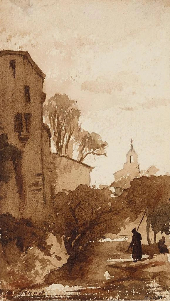 François-Marius Granet, active in the early 19th century, is a French painter renowned for his landscapes and genre scenes. Influenced by the romantic movement, he draws inspiration from the beauty of Italian landscapes, which he discovered during his travels. Granet stands out for his ability to capture the essence of places, blending realism and poetry. His works, often imbued with melancholy, reflect an era when art moved away from academic conventions to explore human emotions and nature. "Landscape with a Steeple" perfectly illustrates this quest for authenticity and beauty.