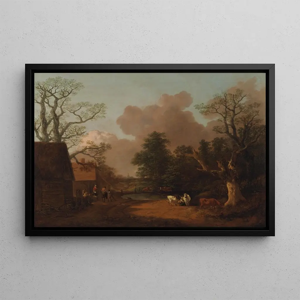 In "Landscape with a Milkmaid," Thomas Gainsborough transports us to the heart of an idyllic pastoral landscape. The canvas depicts a milkmaid engaged in her daily chores, surrounded by lush greenery and soft light caressing the forms. The delicate colors and meticulous details reveal an exceptional mastery of pictorial technique, creating a serene and nostalgic atmosphere. This artwork is a tribute to rural life, where every element, from the sky to the trees, participates in a visual harmony that invites daydreaming.