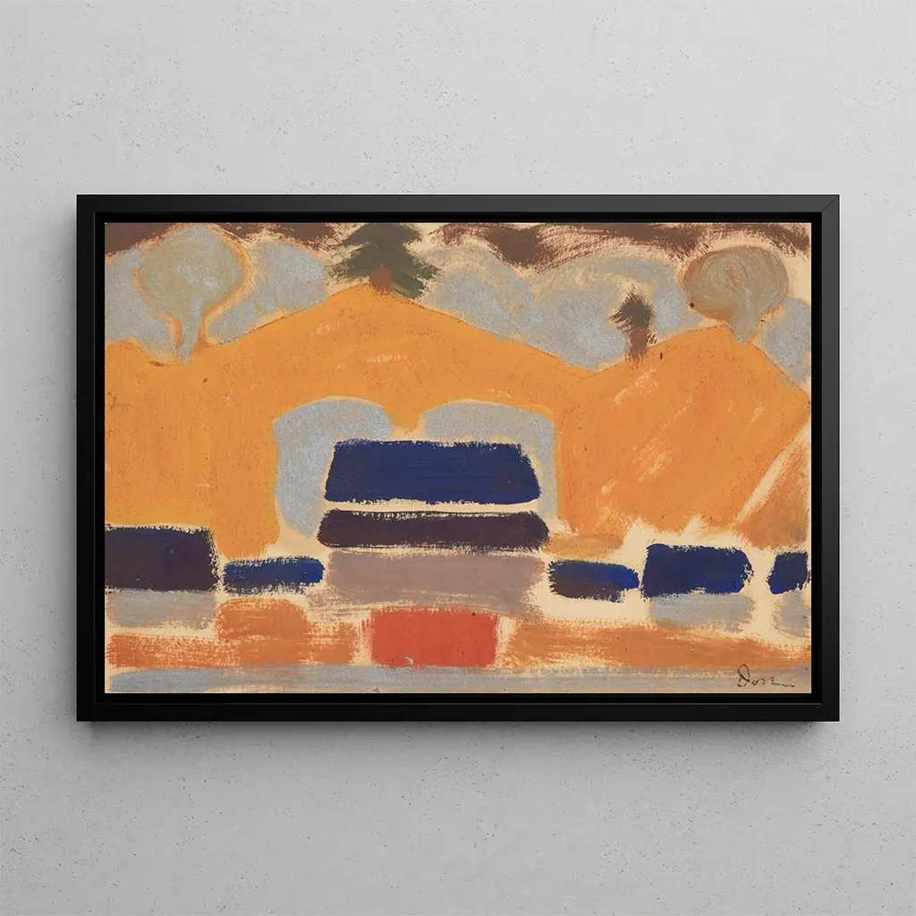 The reproduction of "Landscape with Houses" is an ideal addition for those wishing to bring a touch of originality to their interior decor. Whether in a living room, office, or bedroom, this art print captures the eye and sparks interest. Its reproduction quality ensures fidelity to the nuances and details of the original work, allowing full enjoyment of Dove's aesthetic. By choosing this canvas, you opt for a piece that not only enriches your space but also evokes reflection on the harmony between man and nature.