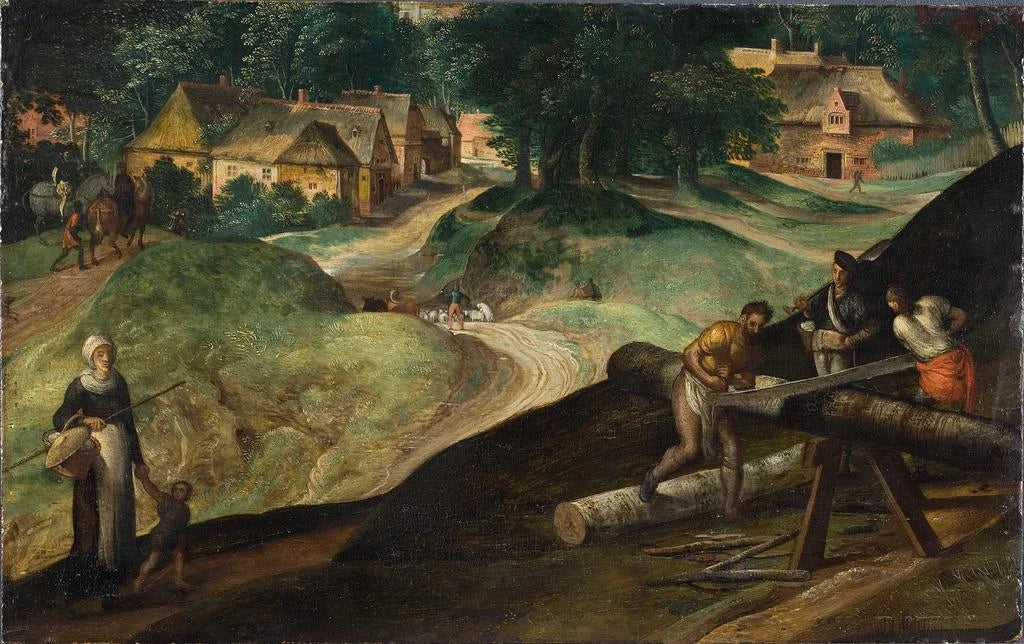 Landscape with Men Sawing Wood - Gillis Mostaert